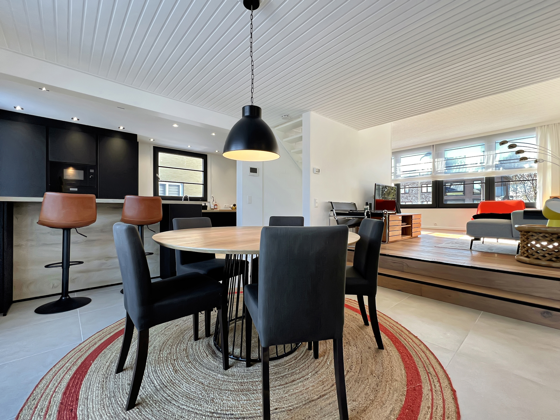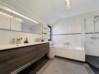 C'est au cœur d'un quartier calme de Waterloo que nous vous présentons cette maison magnifiquement rénovée, alliant look rétro et fonctionnalité. À proximité des commodités, elle promet une vie des plus agréables. Un spacieux hall d'entrée donne accès à un lumineux séjour de près de 70 m² et à une large pièce idéale pour une profession libérale ou une chambre au rez-de-jardin. La grande pièce de vie s'articule autour de la cage d'escalier, avec une cuisine moderne ouverte sur un salon agrémenté d'un bar et une salle à manger offrant une vue apaisante sur le jardin et disposant d'une magnifique terrasse. L'étage comprend une confortable suite parentale avec une salle de bain et un dressing, deux autres chambres avec leur mezzanine et une salle de douche. Le jardin paysager offre une belle atmosphère à explorer. Un garage et une buanderie complètent l'ensemble. Alors n'attendez plus et venez découvrir ce petit bijou immobilier qui allie volumes et style.Eigendomsdetails
