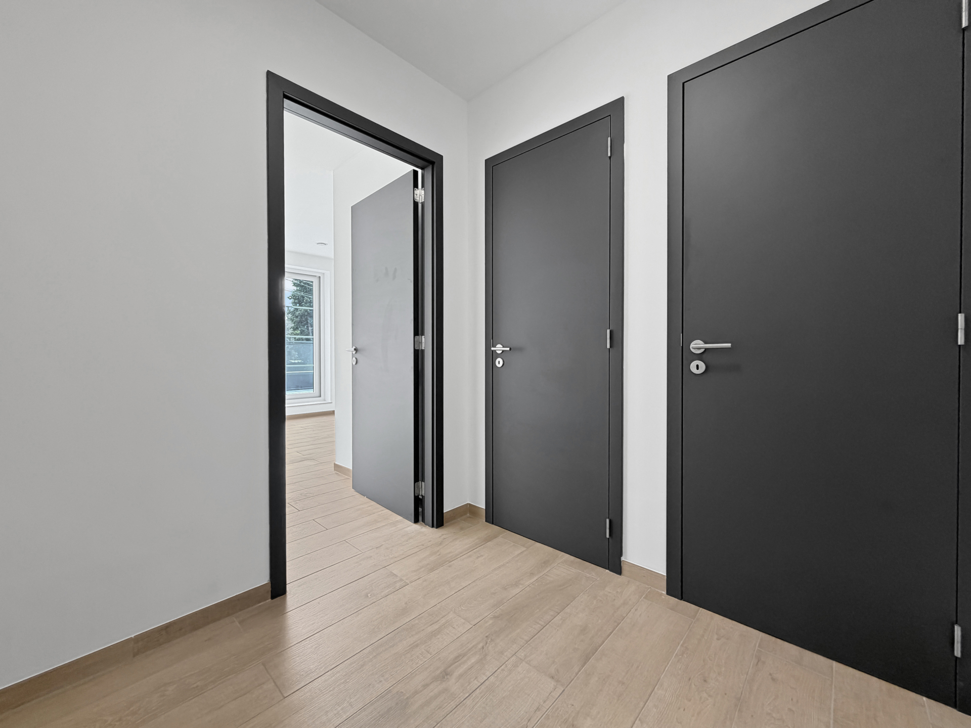 -- VISITE & INFORMATION : martin.franken@propriete-privee.be -- Dans un magnifique immeuble brabançon neuf et idéalement situé face à un ensemble de commerces divers et à proximité immédiate des écoles et du centre sportif, cet appartement conviendra aux candidats locataires à la recherche d'un bien de qualité présentant tous les atouts énergétiques et de confort que l'on est en droit d'attendre d'un bâtiment neuf avec un PEB A, un chauffage par le sol et une isolation acoustique très performante. L'appartement situé en façade arrière possède une jolie vue dégagée, est situé au calme et orienté au sud-est. Il est composé d’un lumineux living avec une cuisine équipée, une belle terrasse, une buanderie, deux chambres et une salle de douches. Au sous-sol, un emplacement de parking et une cave sont compris.Eigendomsdetails