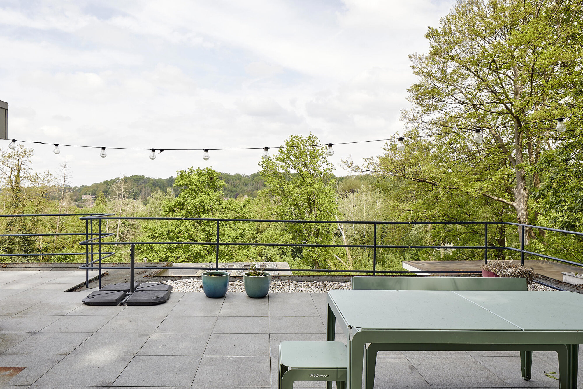 Exclusieve penthouse met dakterras en alle modern comfort gesitueerd op de 2de verdieping gelegen op het domein van het voormalige sanatorium in Tombeek, een absolute parel van het vroeg modernisme volledig ingebed in bos- en natuurgebied. Dit machtige gebouw, geïnspireerd door de bootstructuur, is in 1935 ontworpen door de gerenommeerde architect Maxime Brunfaut en geldt algemeen als een meesterwerk van de Belgische 20e eeuwse architectuur. Het penthouse in kwestie is een ruime loft (160m²) met stylish inkomhal, living, eetplaats en open keuken in een 1-room livingconcept, een afgescheiden extra kamer bijv. als bureau, 3 slpks, een mooie badkamer, een apart toilet en een opbergruimte met aansluitingen. Een nette droge kelder (ongeveer 20m²) is altijd extra meegenomen. De woonruimtes zijn uniek qua dynamische ruimtebeleving met raampartijen aan beide kanten voor voluit licht en zicht op omringend groen en natuur. Let op de mooie duurzame materialen zoals waardevol parket en natuursteen. On top en dit is ook letterlijk te nemen: via de originele trap gaan we naar de dakverdieping. Een geweldige rooftop met adembenemend zicht en volstrekte rust en privacy. Het volledige gebouw kreeg in 1999 een grondige update maar het originele ontwerp en de fantastische architectuur zijn intact behouden. Met dakterras in een historisch en architectonisch meesterwerk ingebed in een groene oase. Ruim, lichtrijk met alle moderne snufjes deskundig geïntegreerd. Heden en verleden in perfecte harmonie is natuurlijk altijd de top van stijlvol wonen met een ziel. Naast esthetiek is veel aandacht besteed aan functionaliteit, energienormen (gasverwarming, overal dubbele beglazing) en opbergmodaliteiten. De locatie is top: een groene omgeving met tal van mogelijkheden voor sporten, wandelen, fietsen en paardrijden. Op wandelafstand van het centrum met winkels en resto’s, alle voorzieningen en een vlotte aansluiting met verkeersaders.Eigendomsdetails