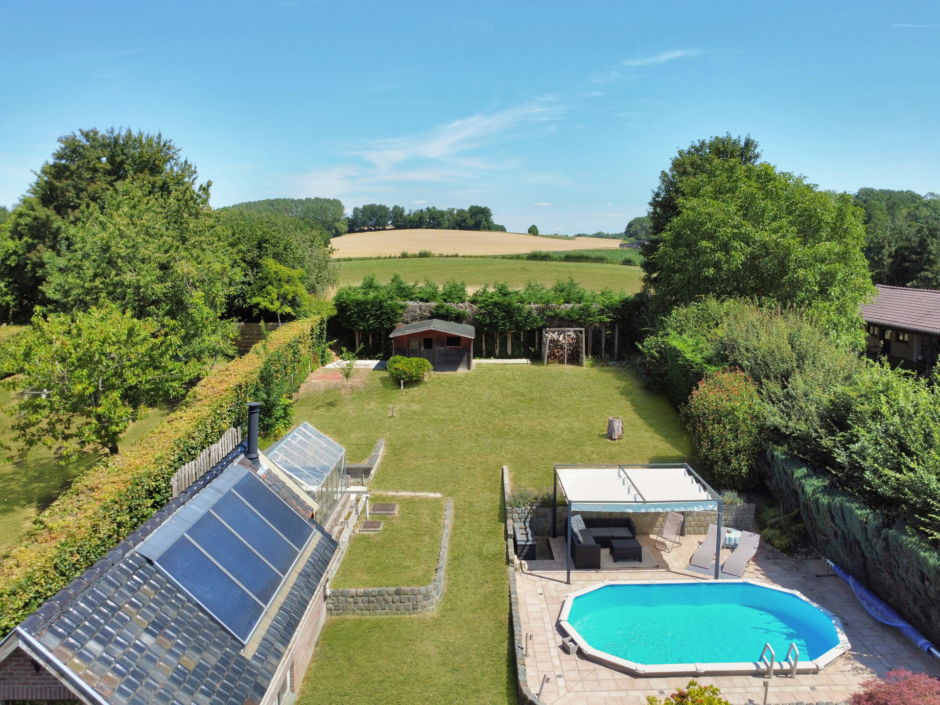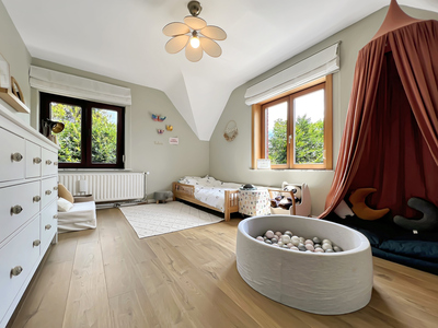 Située en retrait de la rue, cette agréable maison de 320 m² dont 180 m² habitables, vous séduira par ses volumes et ses aménagements de qualité. Le rez-de-chaussée spacieux et bien agencé, dégage une atmosphère chaleureuse et fonctionnelle, idéale pour une vie de famille. L'étage se compose de trois grandes chambres et une salle de bain. Le dernier étage propose un grenier aménagé offrant un espace polyvalent. De grandes caves et une annexe aménageable selon vos besoins, complètent le programme. Le terrain de 13ares, soigneusement entretenu, offre un bel espace extérieur comprenant un jardin arboré, une piscine, une serre ainsi qu’un abri de jardin. L’exposition garantit une belle luminosité tout au long de la journée. Située dans un environnement verdoyant, à proximité des commerces, écoles et axes principaux, cette maison combine style, confort et tranquillité. A visiter sans tarder !Eigendomsdetails