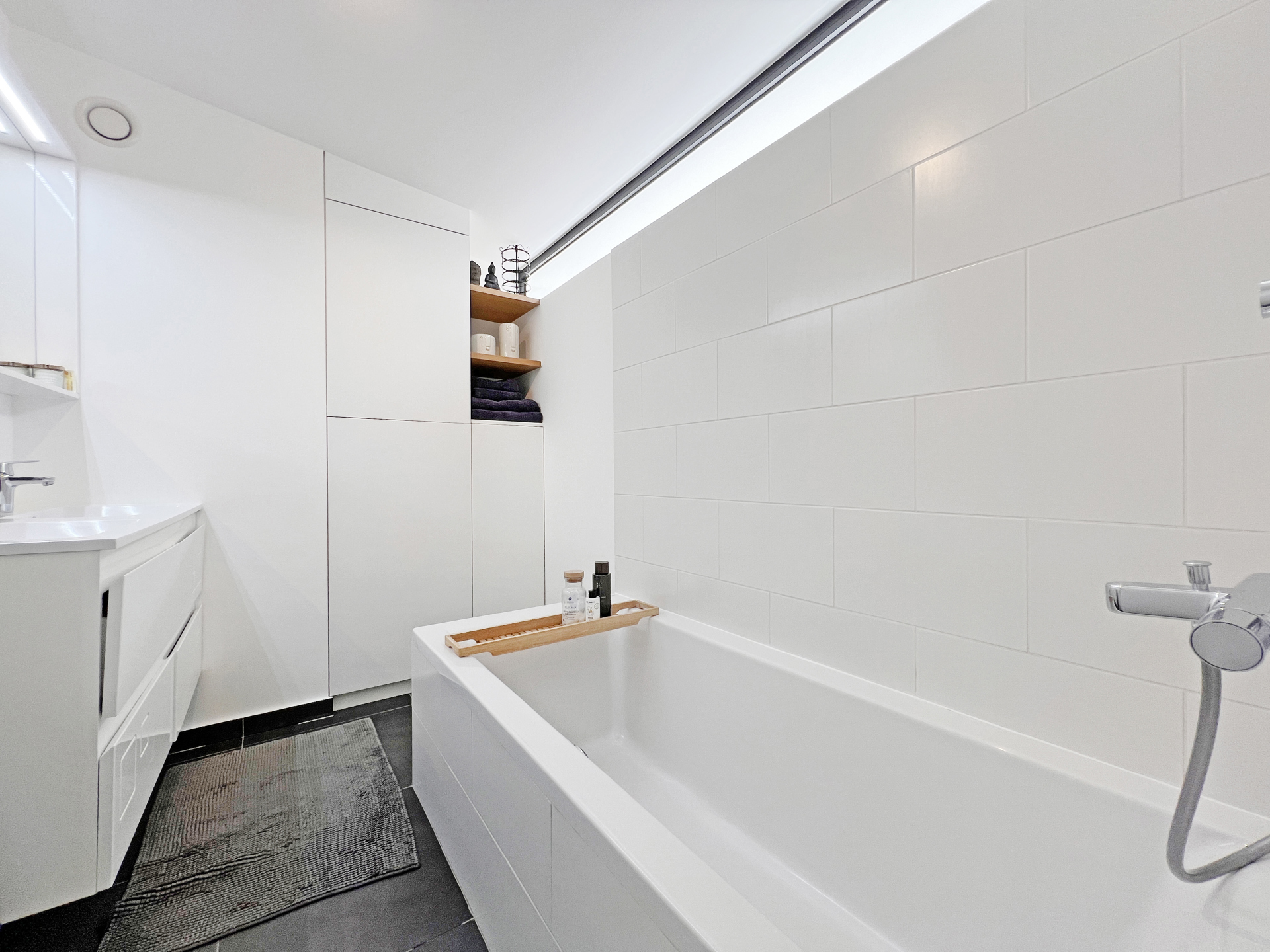 Gelegen in het hart van Jette, in een aangename groene en met bomen omzoomde laan, bevindt dit prachtige hedendaagse duplexappartement, gebouwd in 2018, zich op de derde en bovenste verdieping van een goed onderhouden kleine residentie. Het charmeert door zijn lichtrijke volumes, hoogwaardige afwerkingen en maatwerk dat elke ruimte optimaliseert. De leefruimte, van ongeveer 60 m², omvat een ruime, met licht overgoten woonkamer, open naar een volledig uitgeruste moderne keuken, en loopt uit op een zonnig terras. Boven vervolledigen drie comfortabele slaapkamers met ingebouwde kasten en twee elegante badkamers het geheel. Tot in de kleinste details doordacht, beschikt het appartement over volledige en kwaliteitsvolle uitrusting, wat een optimaal wooncomfort garandeert. Een privékelder en een gemeenschappelijke fietsenstalling maken dit eigendom compleet. Optioneel is er een parkeerplaats beschikbaar in een nabije straat.Eigendomsdetails