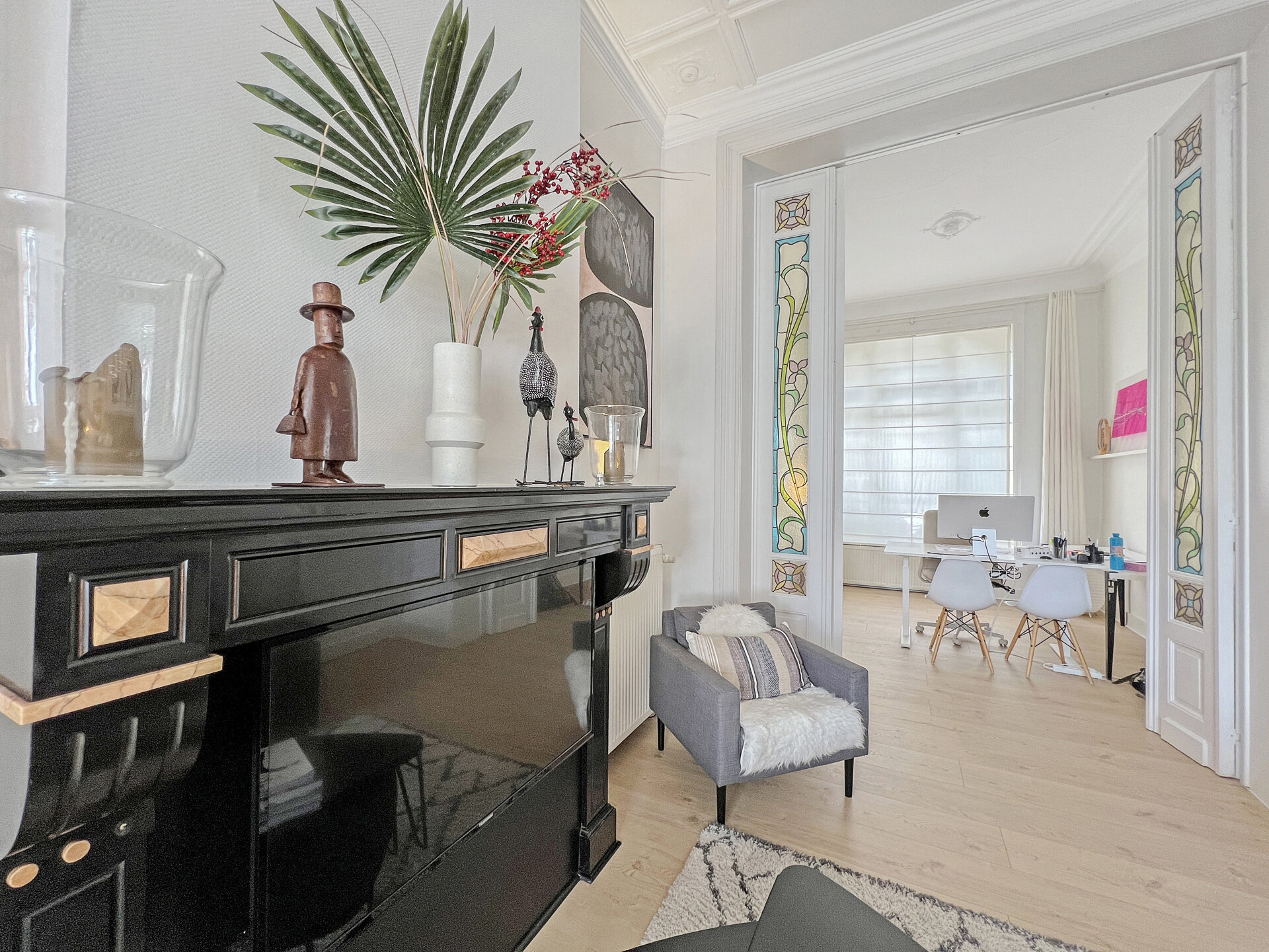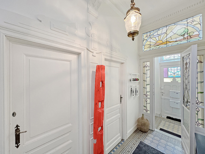 Kleurrijke glas-in-loodramen, open ruimtes, een opmerkelijke gevel, verfijnde afwerkingen en een onmiskenbare charme zijn de kenmerken van ons nieuwe huis in Sint-Lambrechts-Woluwe. Een huis dat dateert uit 1921, ontdekt bijna tweehonderd vierkante meter, gerenoveerd in 2011 met veel smaak en durf. Een perfecte mix van oud en nieuw, je zult versteld staan van de vele verrassingen. Op de begane grond, voorheen verhuurd, vind je een grote woonkamer met open haard, een keuken, een doucheruimte en een slaapkamer. Op de eerste en tweede verdieping vind je een lichte woonkamer, een uitstekend uitgeruste keuken, twee slaapkamers, een badkamer en een studeerkamer. Kelders en een wasruimte maken dit huis compleet. De kers op de taart zijn de twee toegangen naar buiten: een gezellige tuin en een prachtig terras op het zuidoosten! Een juweeltje dat op je wacht!Eigendomsdetails