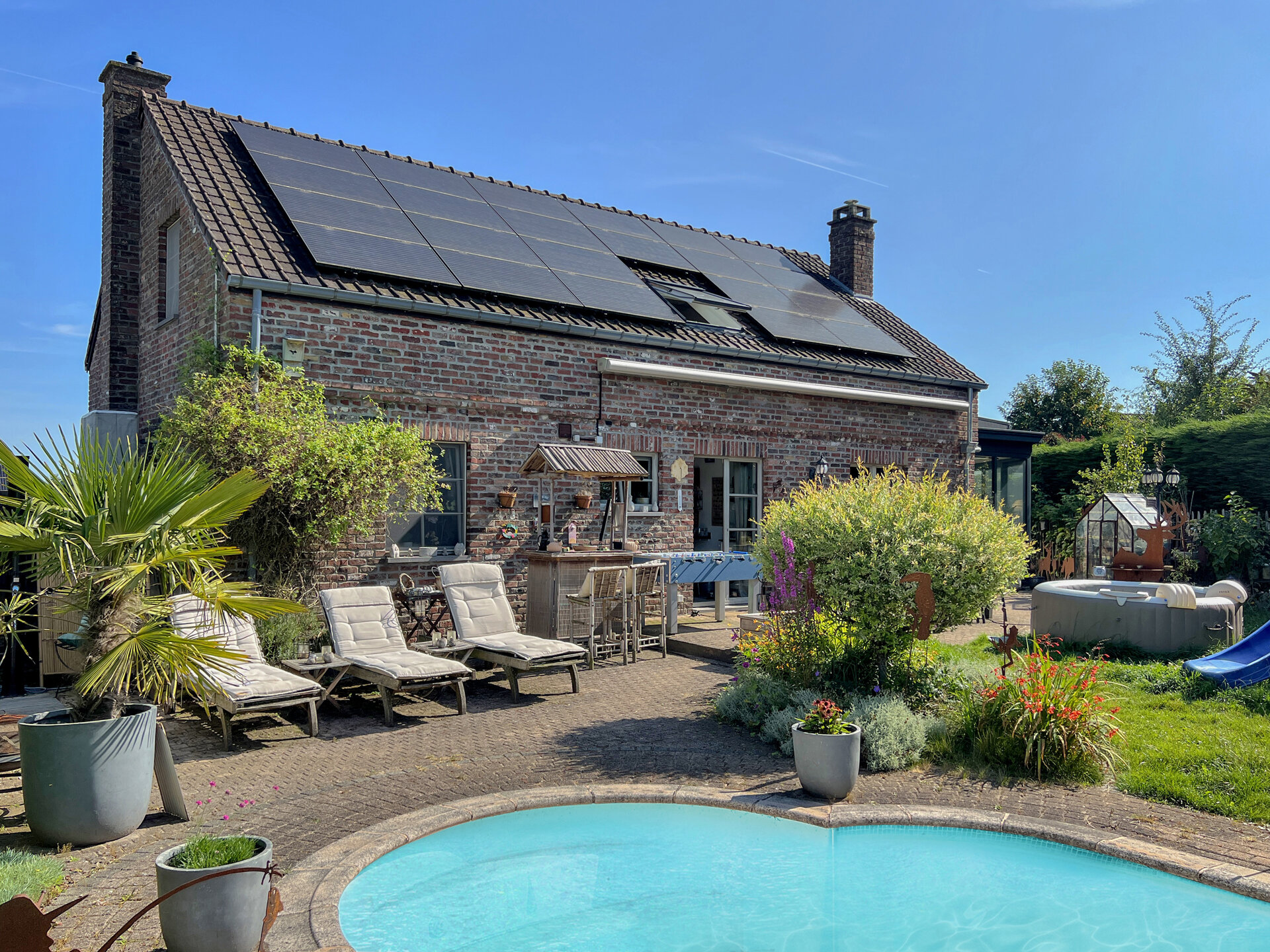 Dit mooie huis uit 1996, gerenoveerd in 2024, ligt op een afgesloten terrein in Chaumont-Gistoux, uit het zicht. Met een oppervlakte van tweehonderd vierkante meter zul je verleid worden door de locatie, de ruimte en de indeling. Je vindt hier een grote zit- en eetkamer badend in het licht dankzij de prachtige serre die uitkomt op de tuin, een ingerichte keuken, een studeerkamer, drie slaapkamers, een doucheruimte, een mezzanine en een kleedkamer. Kelders, een garage en een zolder maken het huis compleet. Op bijna acht hectare grond kun je genieten van een heerlijk zwembad met zonnedouche en recente warmtepomp voor die lange, zonnige middagen! De tuin op het zuiden heeft een goed gevulde moestuin, fruitbomen en een prachtig terras. Uitgerust met een alarmsysteem, fotovoltaïsche panelen, een houtkachel (2023), airconditioning en een recente verwarmingsketel, zul je zeker verliefd worden! Kom het meteen ontdekken!Eigendomsdetails