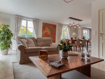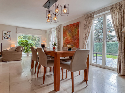 Aan het einde van een rustige doodlopende straat, op de hoogten van Chaumont-Gistoux, verrijst een karaktervolle Brabantse villa, recent met verfijning vernieuwd. Haar tijdloze silhouet past perfect in het groene landschap, waar elk seizoen een nieuw lichtspel brengt. Binnen heerst rust en helderheid: grote ramen laten het zonlicht binnenstromen en benadrukken de warmte van de open leefruimte, die naadloos overgaat in de tuin. De terrassen strekken zich uit naar een zorgvuldig aangelegd landschap, waar schaduwrijke hoekjes, bloemengeuren en het zachte geluid van het verwarmde zwembad samenkomen. Iets verder vervolledigen een moestuin en een serre deze sfeer van evenwicht en zachtheid. Ontworpen om een harmonieus gezinsleven te omarmen, combineert de woning elegantie met comfort en verkeert ze zowel binnen als buiten in onberispelijke staat. Een zeldzame plek, waar elk detail zijn juiste plaats heeft gevonden, badend in het licht en gericht naar het zuidwesten — als een blijvende belofte van sereniteit.Eigendomsdetails