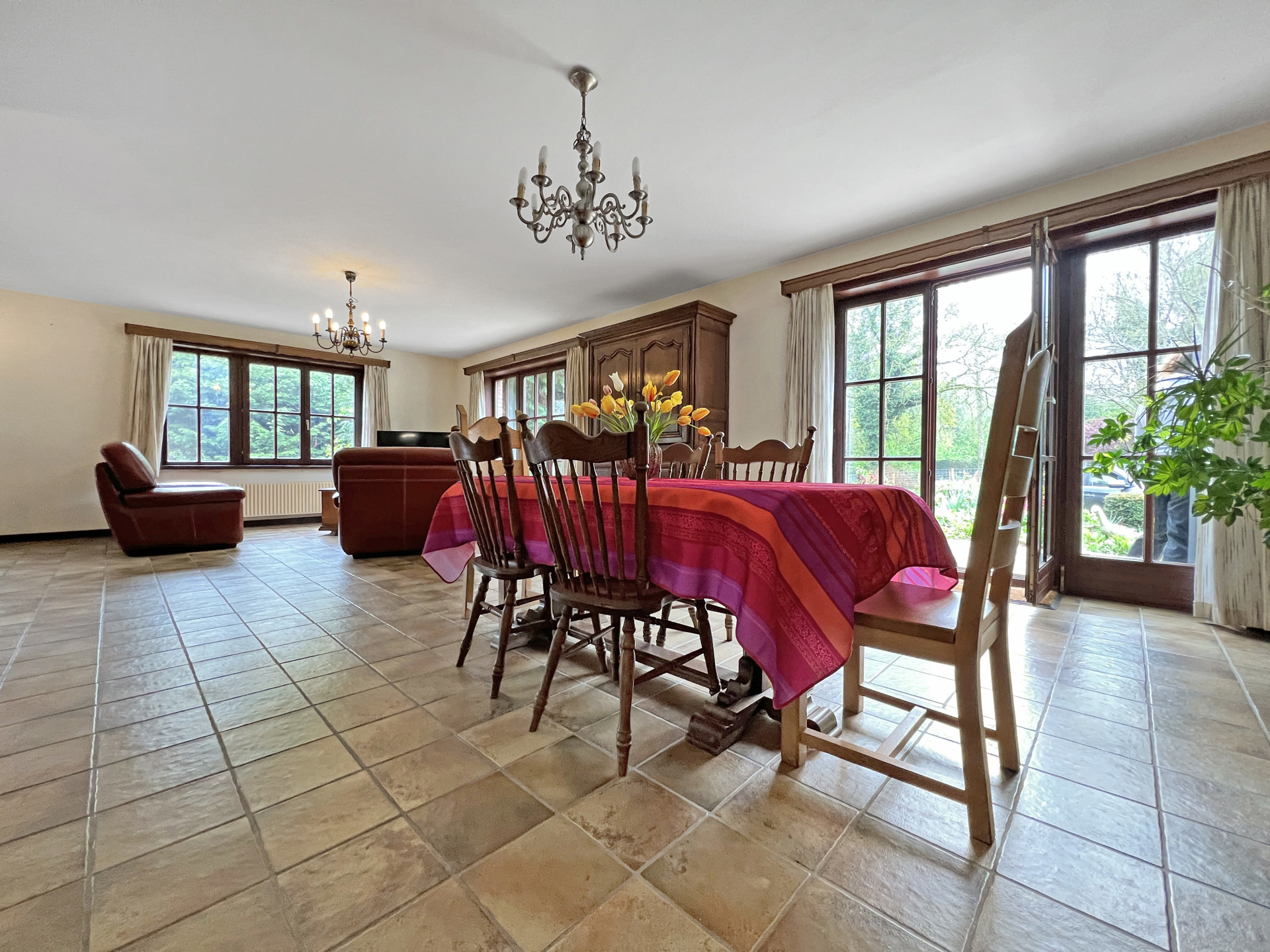 Deze imposante villa uit het begin van de jaren 80 is gelegen in een rustige doodlopende straat, aan de rand van velden en bossen. Een uitzonderlijke ligging, ideaal vertrekpunt voor prachtige wandelingen in de natuur en het platteland, en toch dicht bij alle voorzieningen. Bij het betreden van de woning valt meteen de royale ruimte, het overvloedige licht en het karaktervolle voorkomen op. De villa werd met zorg gebouwd en uitstekend onderhouden, maar vraagt om een renovatie om haar volle potentieel te benutten en aan de huidige normen te voldoen. De woning biedt een ideale indeling voor een groot gezin, met de mogelijkheid om tot zes slaapkamers in te richten. De leefruimtes zijn ruim, licht en openen naar buiten. Praktisch gezien beschikt het pand over vier garages, waarvan twee met een uitzonderlijke plafondhoogte—ideaal voor een ondernemer of professioneel gebruik met nood aan opslagruimte. Een zeldzaam pand, degelijk gebouwd, dat charme, functionaliteit en buitengewoon potentieel combineert in een rustige, natuurlijke omgeving.Eigendomsdetails