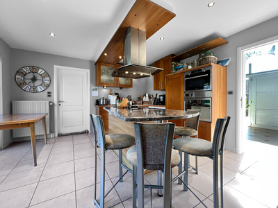 Gelegen in een rustige omgeving, aan de rand van velden en op het einde van een doodlopende straat, zal deze lichte en functionele villa u bekoren met haar bevoorrechte ligging en verzorgde afwerking. Vanaf de inkomhal wordt u verwelkomd in een ruime entree die meteen de kwaliteit van de constructie onthult. Vervolgens komt u in een mooie, lichtrijke leefruimte waar de woonkamer, voorzien van een gezellige open haard, uitnodigt tot ontspanning. Deze ruimte staat in verbinding met de keuken, die wordt aangevuld door een discrete en praktische bijkeuken. Een bureau vervolledigt het gelijkvloers, ideaal voor thuiswerk. Op de eerste verdieping bevinden zich vier comfortabele slaapkamers en twee badkamers. Buiten is de echte troef van deze woning de prachtige tuin, die direct grenst aan de velden en een vrij uitzicht biedt met een gevoel van ruimte en vrijheid. Wat het praktische betreft, beschikt de villa over een grote garage met een laadpaal voor elektrische wagens en twee kelders. Wacht niet langer en ontdek deze parel met uitzicht op de velden!Eigendomsdetails