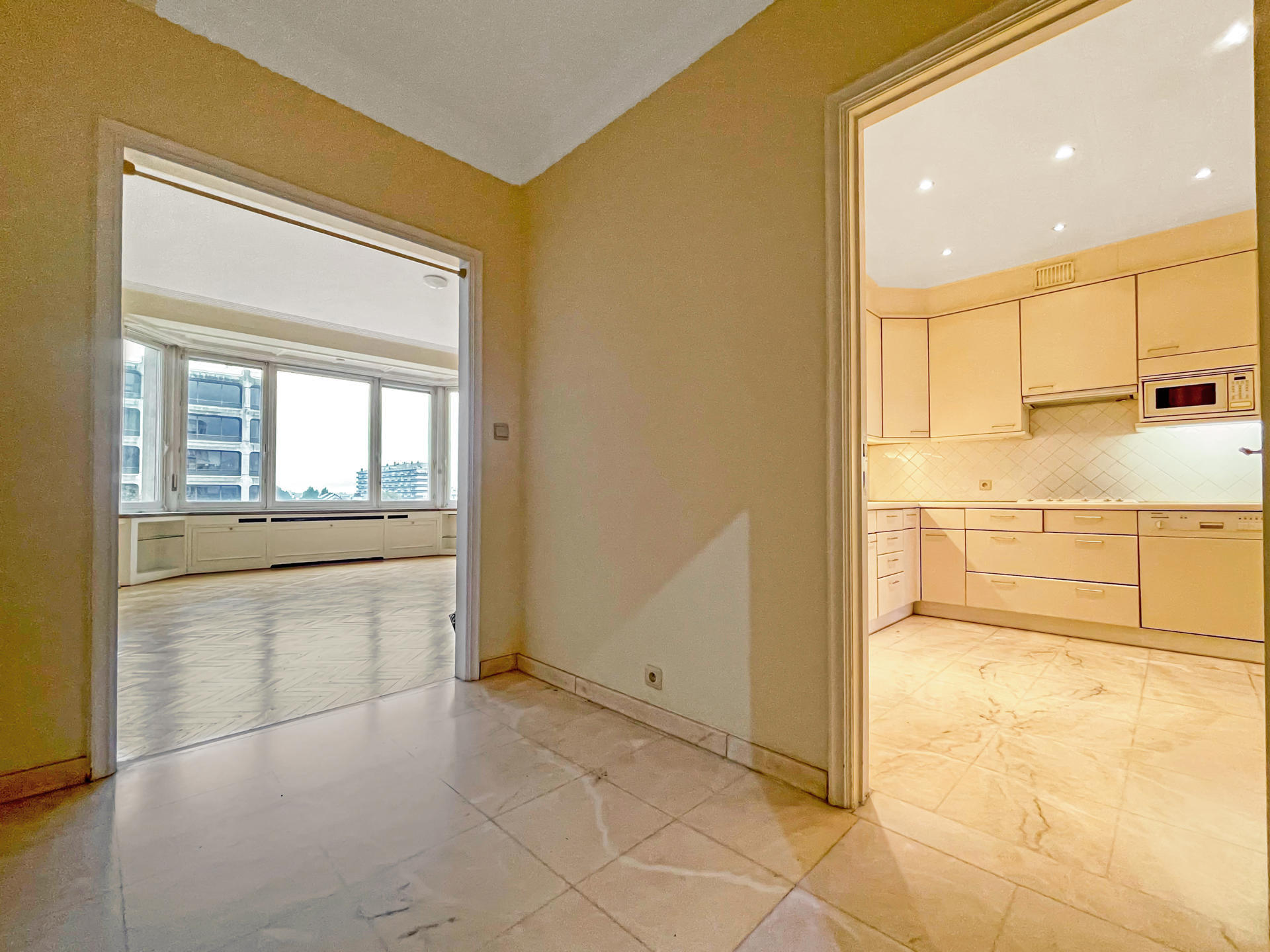 C’est sur la prestigieuse Avenue Louise que vous serez charmé par ce lumineux appartement situé au 5ième étage d’un immeuble de caractère parfaitement entretenu. Vous pourrez apprécier un appartement de 105 m2 composé d’un hall d’entrée suivi d’une agréable pièce de vie de 35 m2 avec parquet en chêne et un bow-window lui conférant beaucoup de cachet. La cuisine équipée avec four, micro-onde, lave-vaisselle, frigo, machine à laver, sera d’autant plus appréciée grâce à ses nombreux placards. Les deux chambres de 12 et 15m2 possèdent un très beau parquet chevron dont l’une avec sa salle de bain au look 70’s et balcon. En plus d’une cave (6m2) et d’une chambre de bonne aménagée (9m2), un concierge à mi-temps se tient à votre disposition. Ce bien sera autant apprécié comme résidence que pour un investissement, l'immeuble étant particulièrement convoité par les expatriés, diplomates et fonctionnaires internationaux. De plus, l'immeuble permet l'installation d'une personne ayant un profession libérale comme avocat, notaire, docteur, etc.. Les charges mensuelles qui s’élèvent à 360€ comprennent le chauffage, eau chaude et froide, conciergerie, électricité des communs, assurances et fais d’entretien de l’immeuble. PEB : E+ Parking en option : 55.000€ RC non indexé : 1.895€Eigendomsdetails