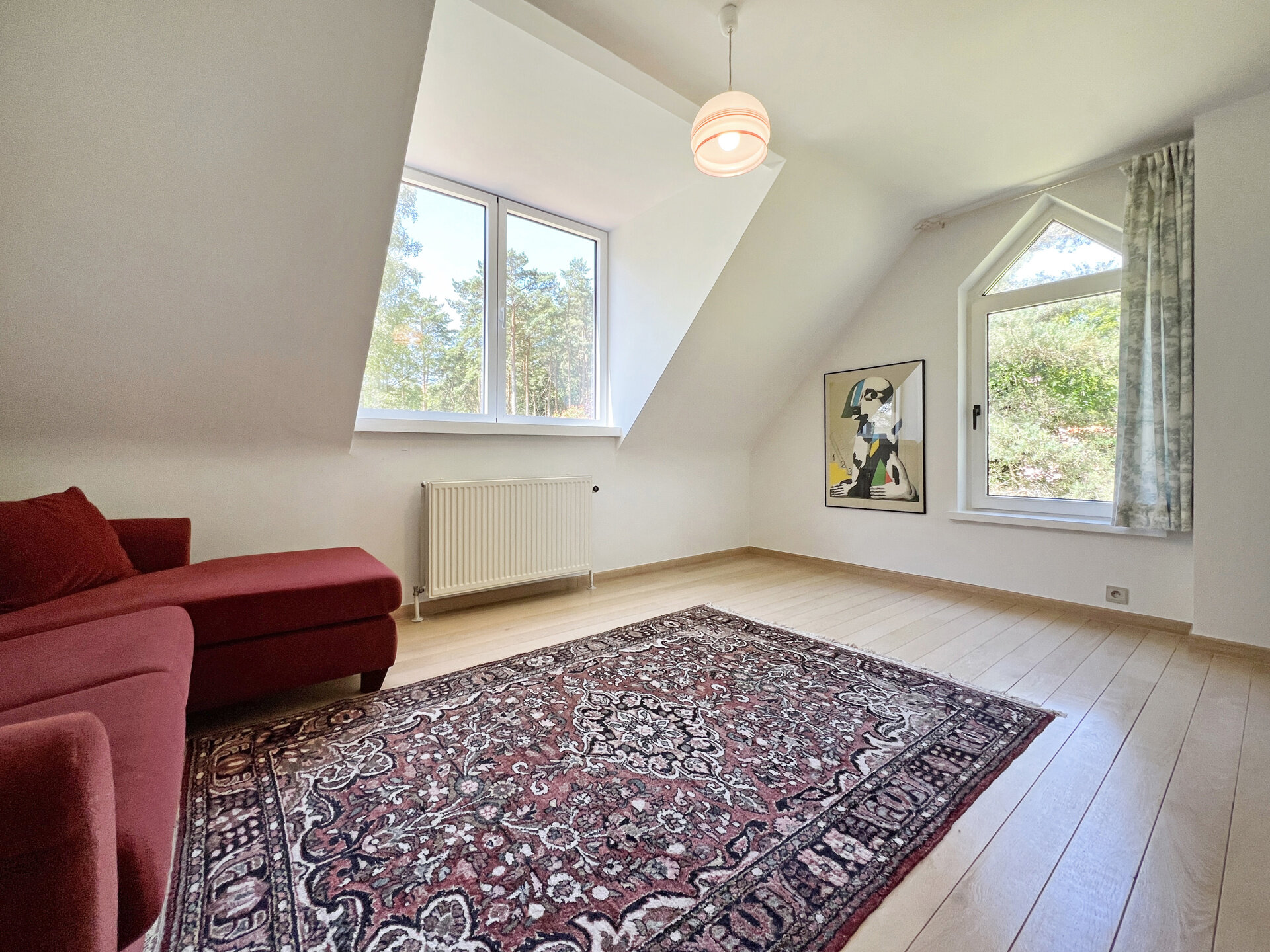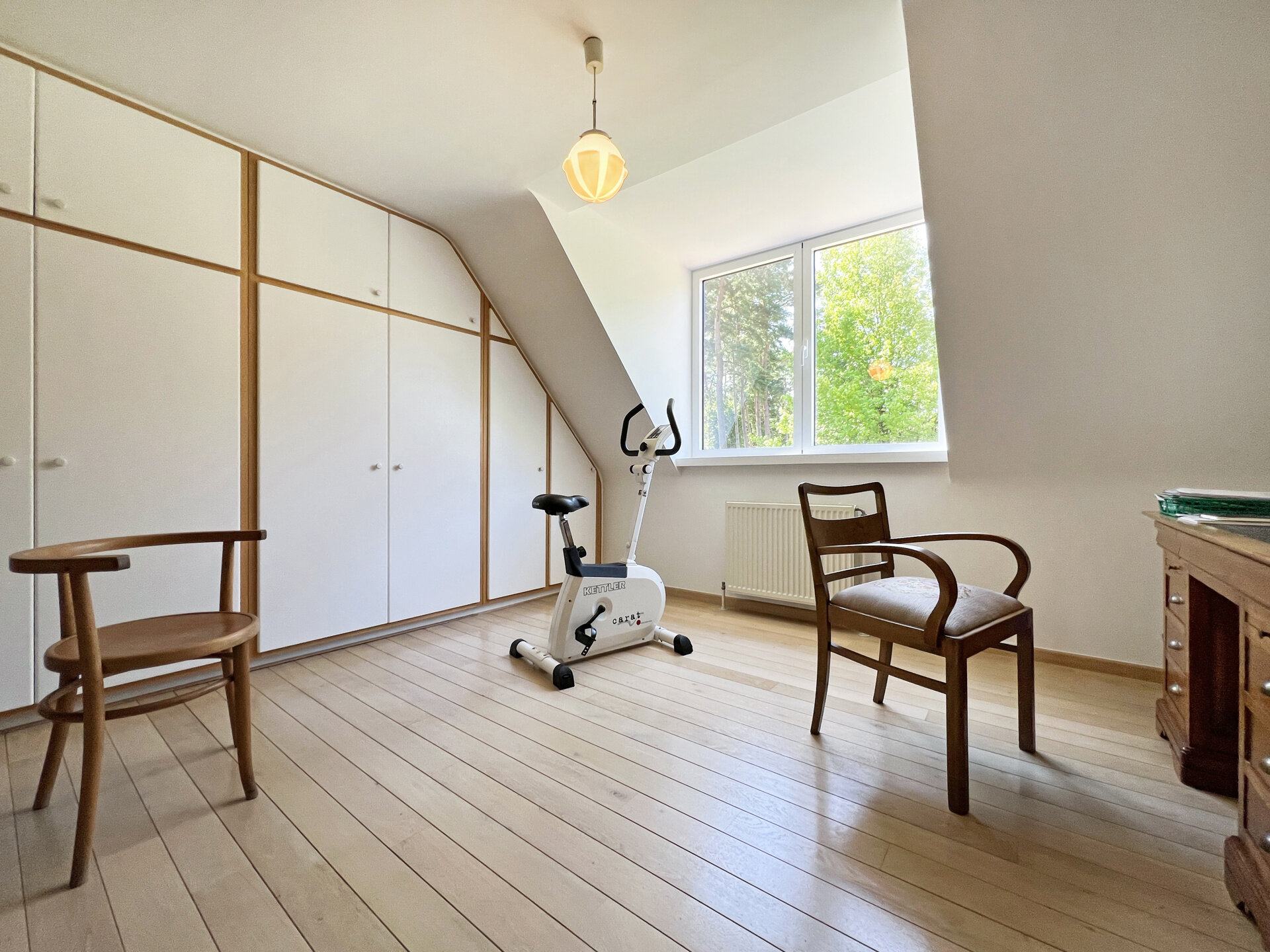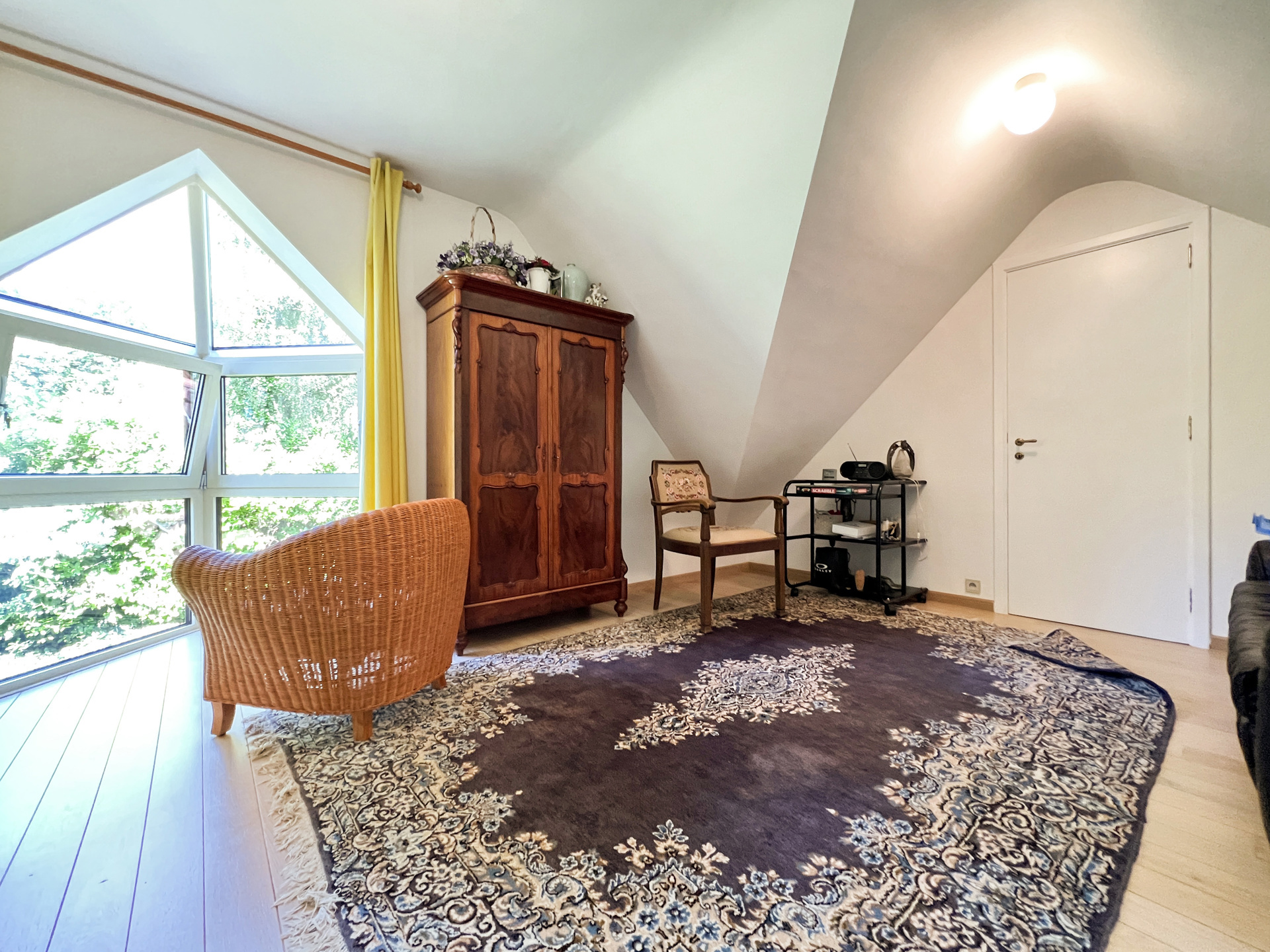 Vous rêvez de vivre dans un cadre résidentiel élégant, au calme, non loin des commerces, des écoles et axes routiers ? Nous l’avons trouvé ! Située dans le prestigieux Domaine du Bercuit, cette lumineuse villa de 250 m2 habitables est implantée sur un terrain plat de 23 ares avec un beau jardin à maturité, sans vis-à-vis, parfaitement orienté Sud/Ouest. La maison comprend au rez de chaussée un agréable salon avec cheminée et coin tv ainsi qu’une salle à manger, l’ensemble donnant sur le jardin par de grandes baies vitrées. La cuisine récente entièrement équipée avec un coin à déjeuner agrémenté d’une cheminée parfaite pour les grillades au feu de bois, est prolongé par une belle et lumineuse véranda qui s’ouvre sur le jardin. La buanderie donne sur un espace couvert qui mène au car port et aux doubles garages ce qui permet de rentrer dans la maison à pieds secs , très pratique pour le climat belge…Le hall d’entrée avec vestiaire et wc mène également à une vaste chambre avec salle de douche neuve, parfaite pour les personnes qui désirent vivre de plain-pied et elle pourrait également faire office de bureau. L’étage est composé d’un hall de nuit qui dessert 4 belles grandes chambres avec plancher massif, ultra lumineuses grâce à de nouvelles larges fenêtres, ainsi qu’une salle de bain et une salle de douche. Voici une belle maison à taille humaine, très bien entretenue, sur un joli jardin facile d’entretien, bien orienté avec comme atout principal sa localisation.Eigendomsdetails