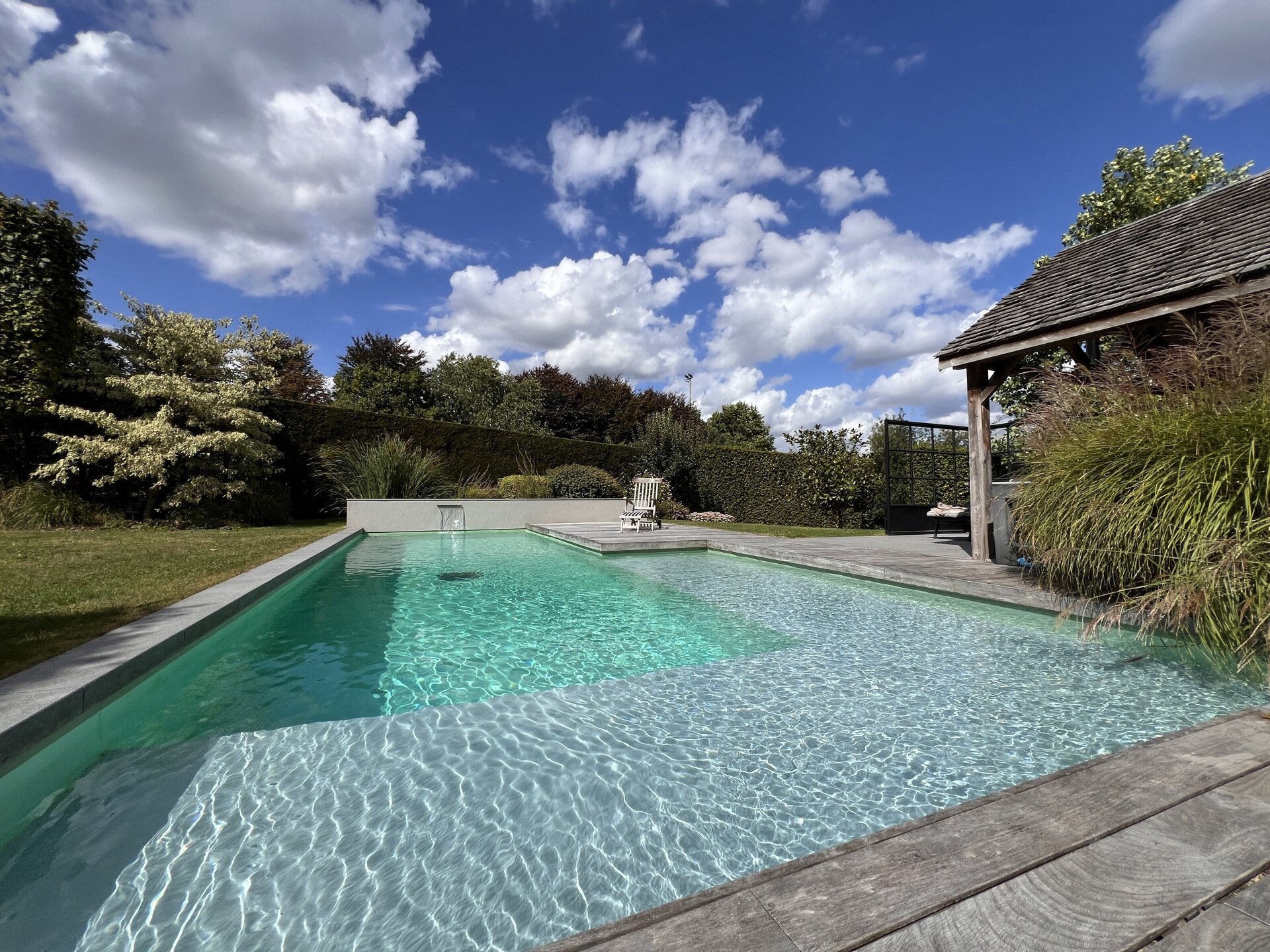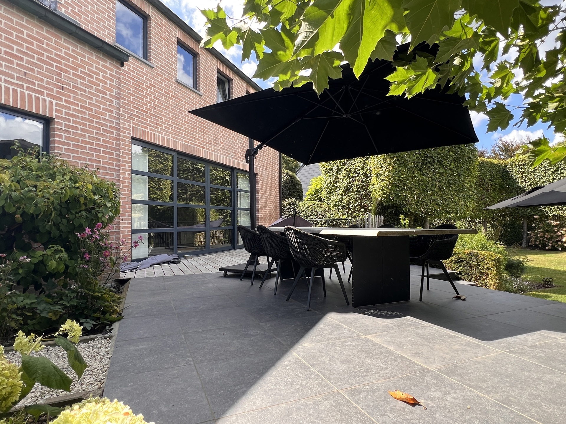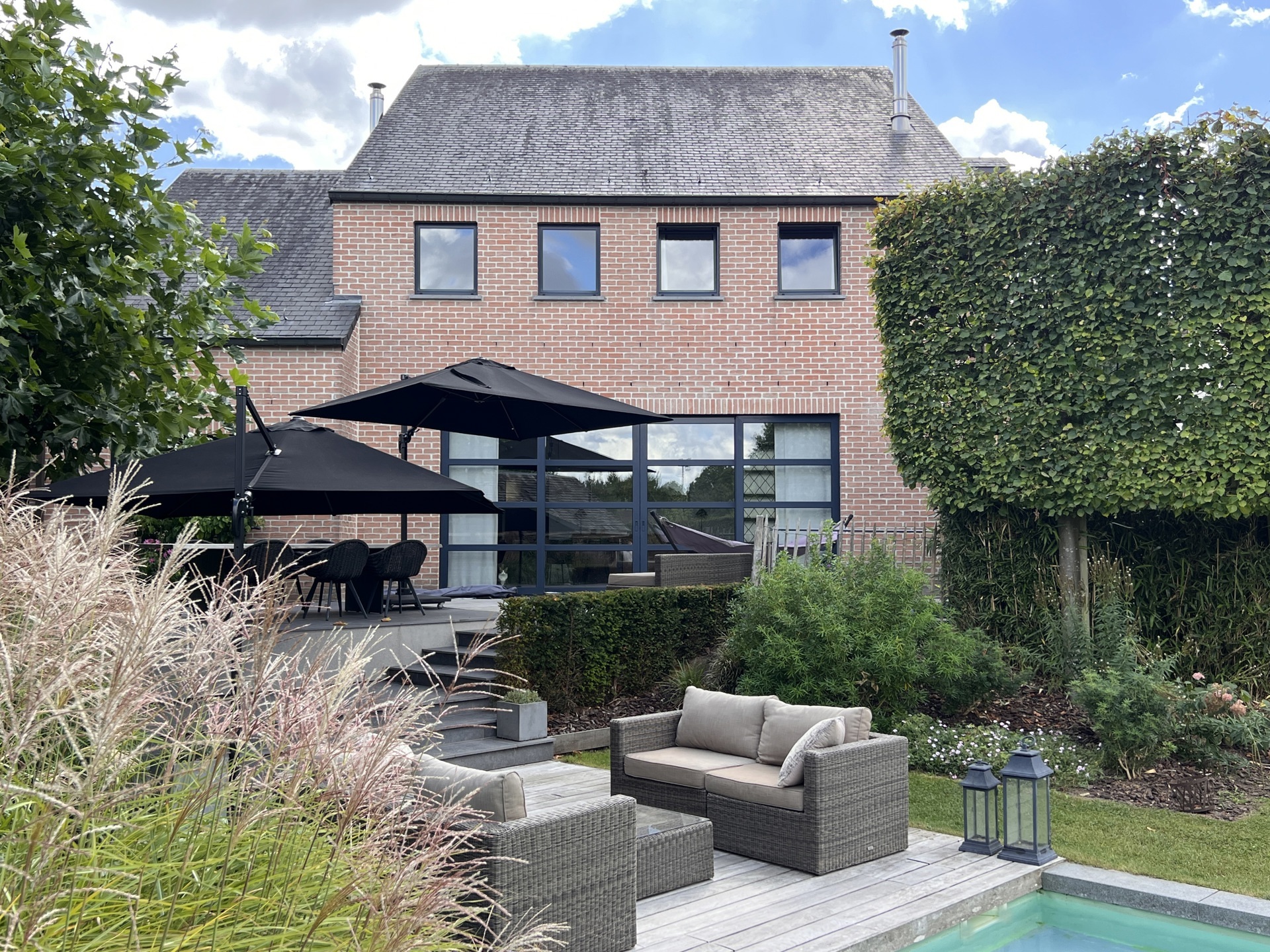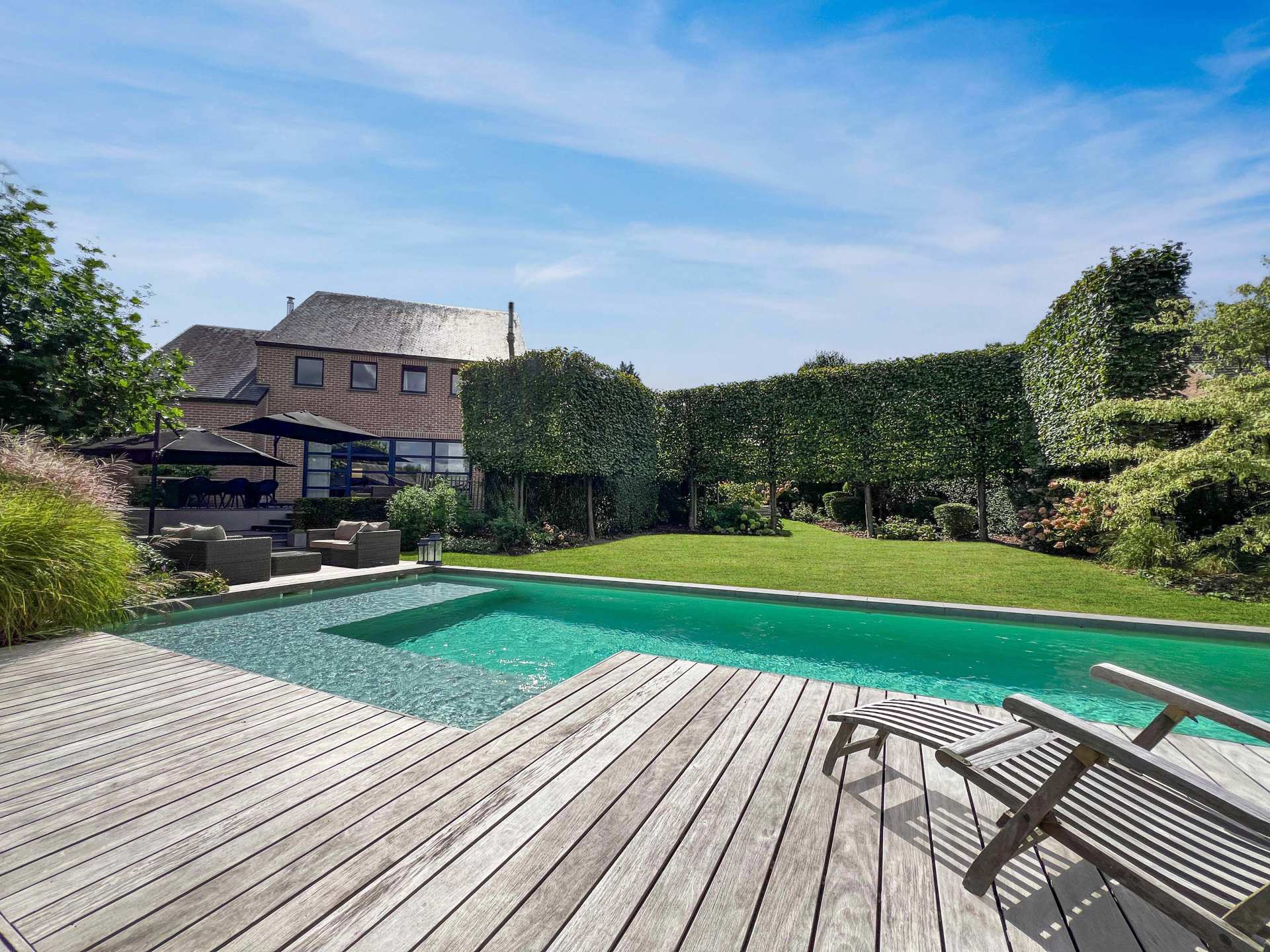 Nichée à l’abri des regards, cette villa de caractère surprend dès les premiers pas : un superbe jardin paysager, totalement insoupçonné, s’ouvre comme une oasis de tranquillité. En son cœur, une piscine naturelle aux lignes élégantes s’intègre harmonieusement dans le décor, créant une ambiance de vacances toute l’année. La maison principale offre 4 chambres spacieuses et 2 salles de bains, pensées pour le confort de toute la famille. Les espaces de vie lumineux invitent à la détente, ouverts sur l’extérieur et baignés de verdure. Les finitions intérieures sont tout aussi surprenantes et marquent le ton, on est ici dans un bien de grande qualité. Véritable atout rare : un espace professionnel indépendant de plus de 150 m² et un large parking, idéal pour une activité libérale, artistique ou entrepreneuriale, complète l’ensemble. A l'avant du bien, sur le parking, un terrain constructible pourrait encore augmenter le potentiel actuel de l'ensemble de la propriété. Entre vie privée et projet professionnel, cette propriété unique offre une qualité de vie exceptionnelle, dans un environnement résidentiel et très central.Eigendomsdetails