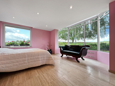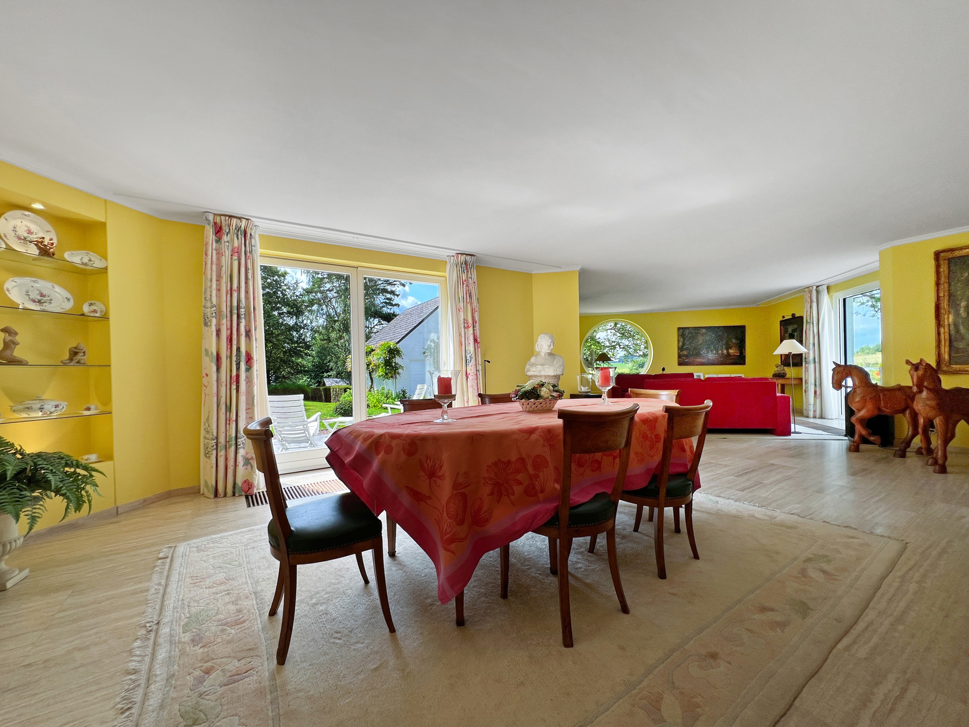 Elle fait partie de ces propriétés où l'on est émerveillé en découvrant que l'on a très certainement trouvé la perle rare ! Tout d'abord, c'est la vue dominante et à 360 degrés sur la campagne qui est surprenante. Ensuite, en tournant autour de la maison, c'est la diversité des ambiances qu'offre le jardin qui nous ravit. Sans nul doute l'œuvre d'un professionnel ? Effectivement, l'architecte auteur des plans de la maison est Christian Petit et l'aménagement extérieur de la propriété est signé : Jean-Noël Capart. Plus loin, on découvre une véritable maison de famille avec ses nombreuses baies vitrées, ses terrasses, ses aires de jeux et surtout sa magnifique piscine à débordement discrètement située derrière une haie à l'abri des regards et sécurisée d'une clôture pour les plus petits. L'intérieur de la maison baigné de lumière respire le bien-être et la convivialité. Les pièces de réception sont spacieuses et raffinées et l'habitation dispose aussi d'une grande cuisine "family room" avec un salon TV/salle de jeux adjacent. Une suite parentale de plain-pied permet aux familles de tous âges de se projeter dans cette superbe villa. Construit en 1989, le bien a été entretenu et maintenu au goût du jour avec beaucoup de passion et d'amour par ses heureux propriétaires. C'est une propriété qui sent bon la joie de vivre que nous vous proposons de découvrir !Eigendomsdetails
