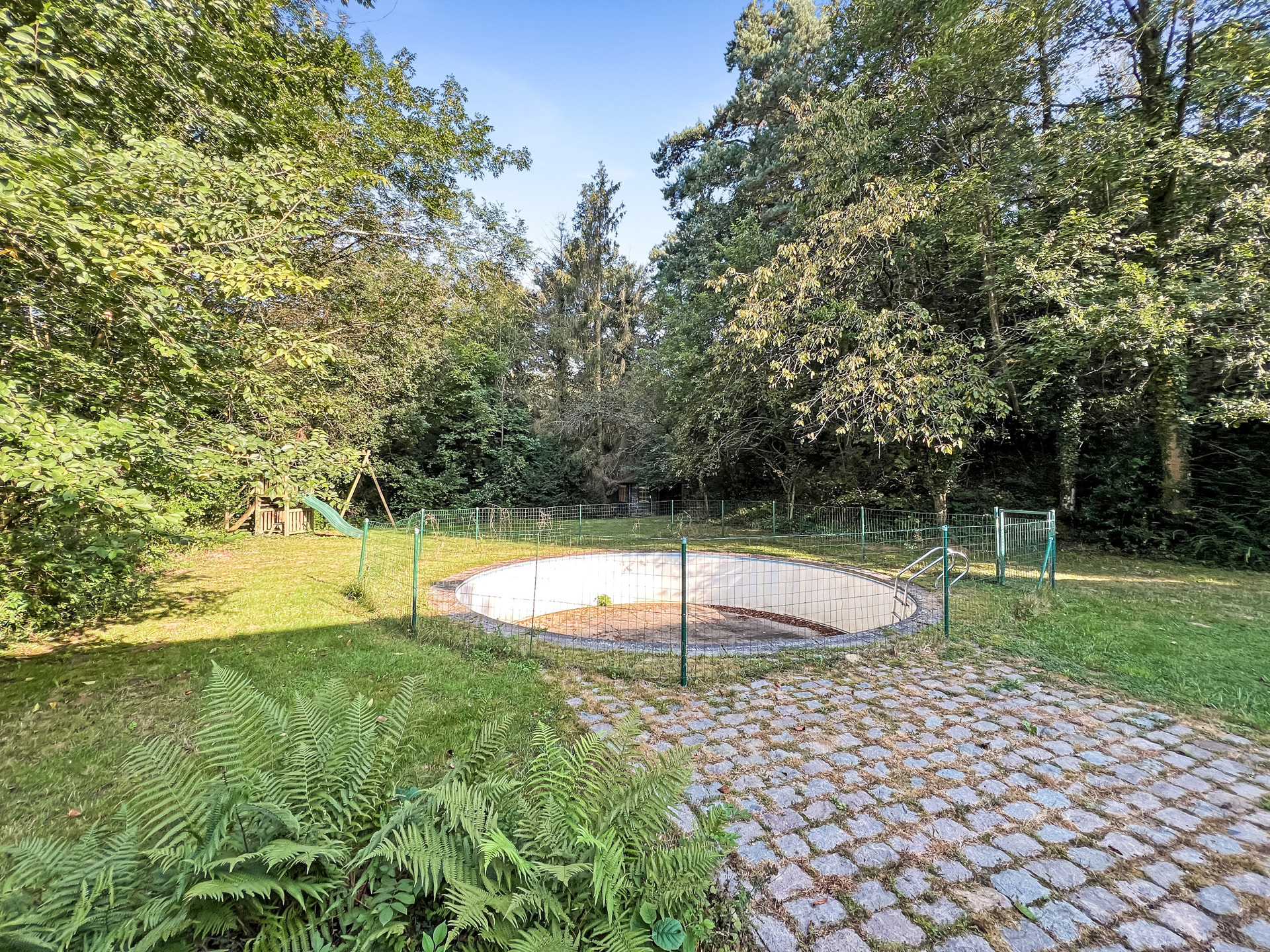 En bordure d'une zone naturelle préservée, une clairière abrite cette villa qui est la dernière habitation de ce quartier super privilégié de Chaumont-Gistoux. En effet, cette rue sans issue offre à ses habitants un lieu de vie très calme et pourtant tout proche des commerces du village, de son centre sportif et de ses écoles. La maison date de 1980 et permettra, avec des rénovations, de profiter au mieux de ce cadre de vie exceptionnel. Les pièces de vie sont toutes situées au niveau du jardin à l'arrière et deux premières chambres avec une salle de bain sont de plain pied. L'étage aménagé plus tard, dans l'ancien grenier de la maison, se compose de deux chambres et d'une salle d'eau. Au niveau du rez-de-chaussée, un étage entier comprend un garage et des caves qui pourront être aménagés en fonction de vos besoins et projets. Un lieu unique qui vaut la peine d'être découvert si vous rechercher un endroit calme au coeur de la nature et que vous avez envie de rénover et d'exploiter tout le magnifique potentiel de ce bien.Eigendomsdetails