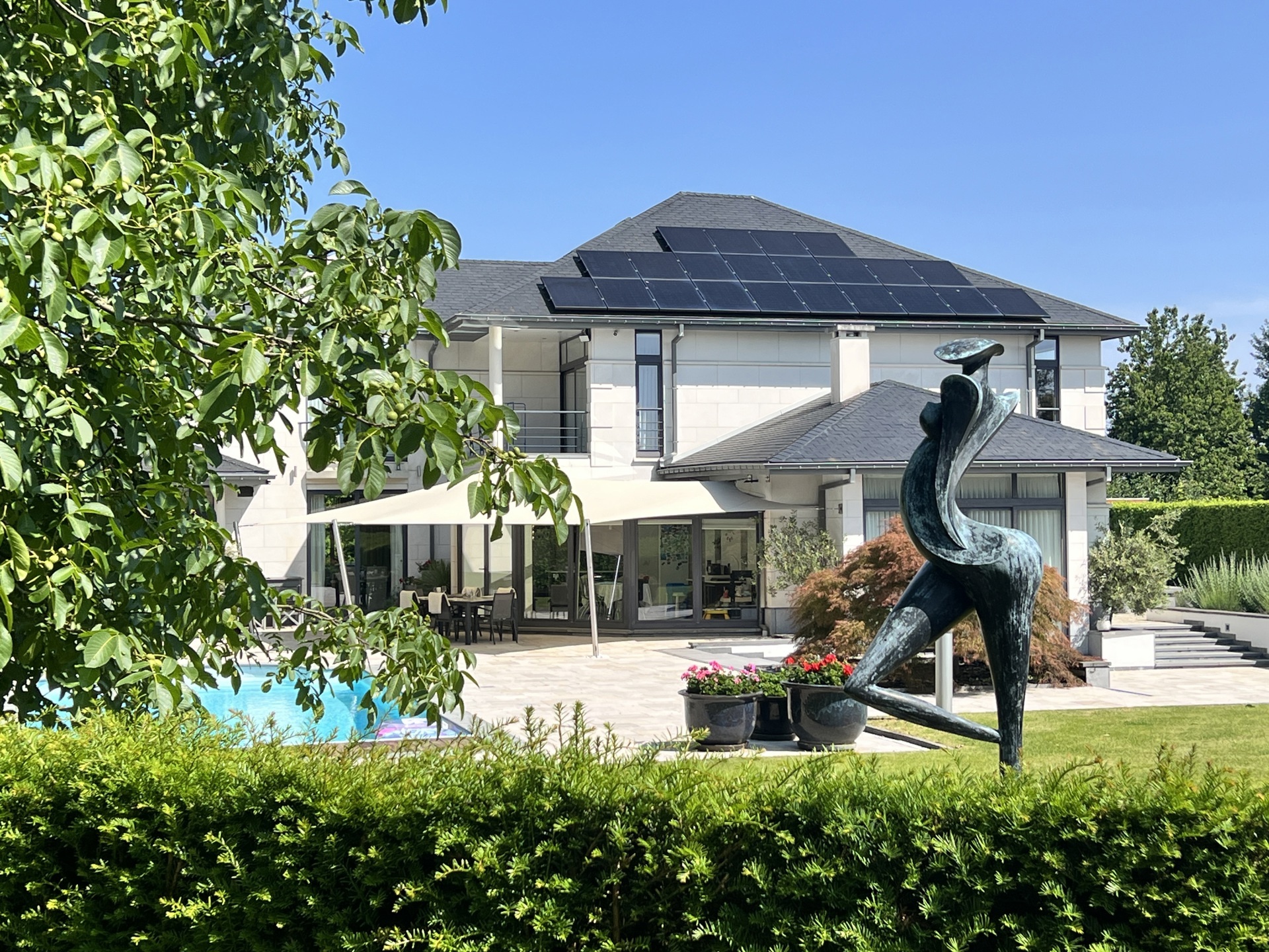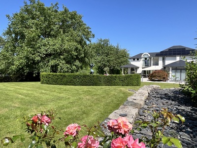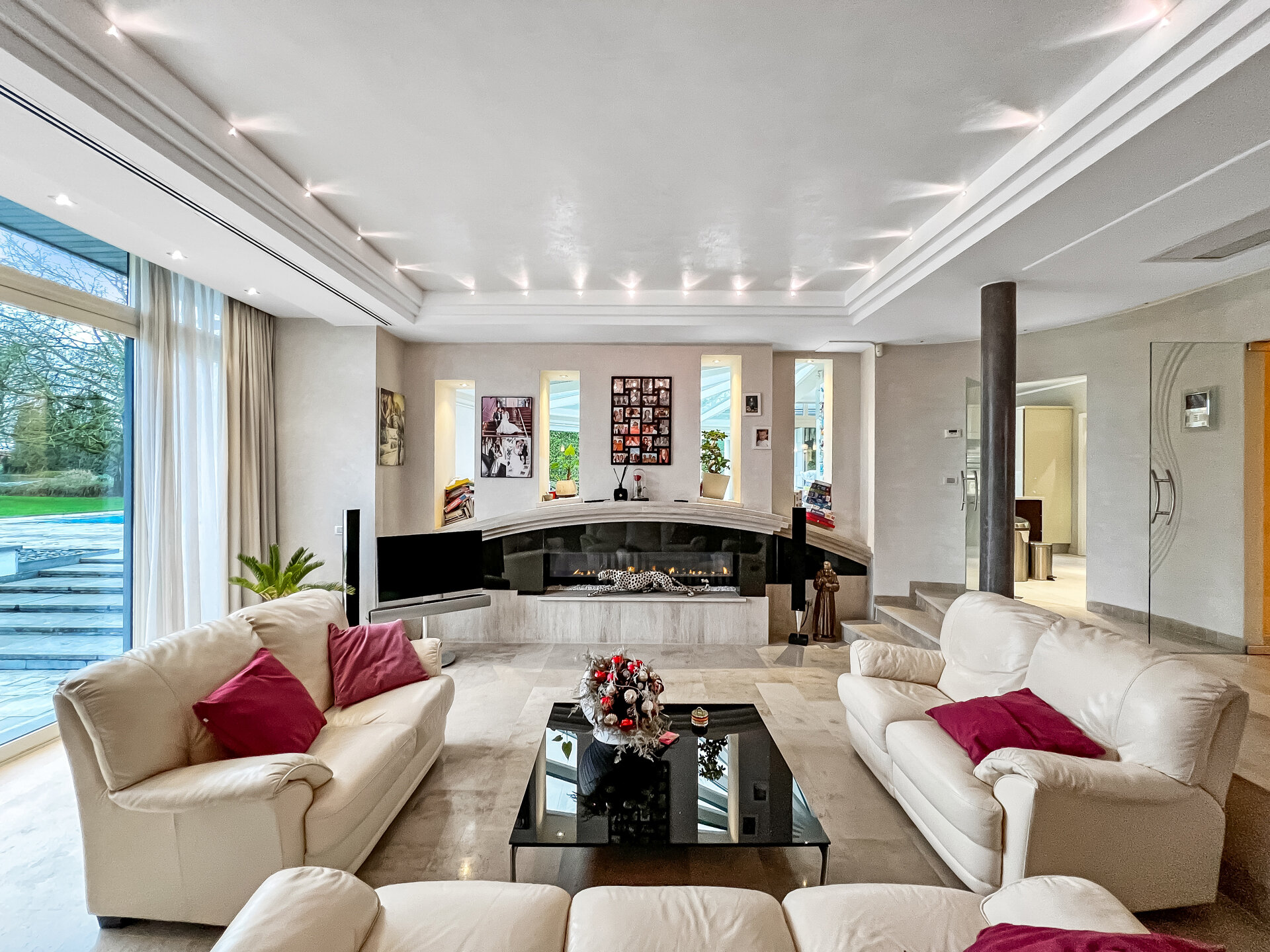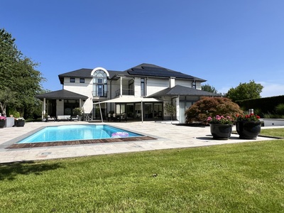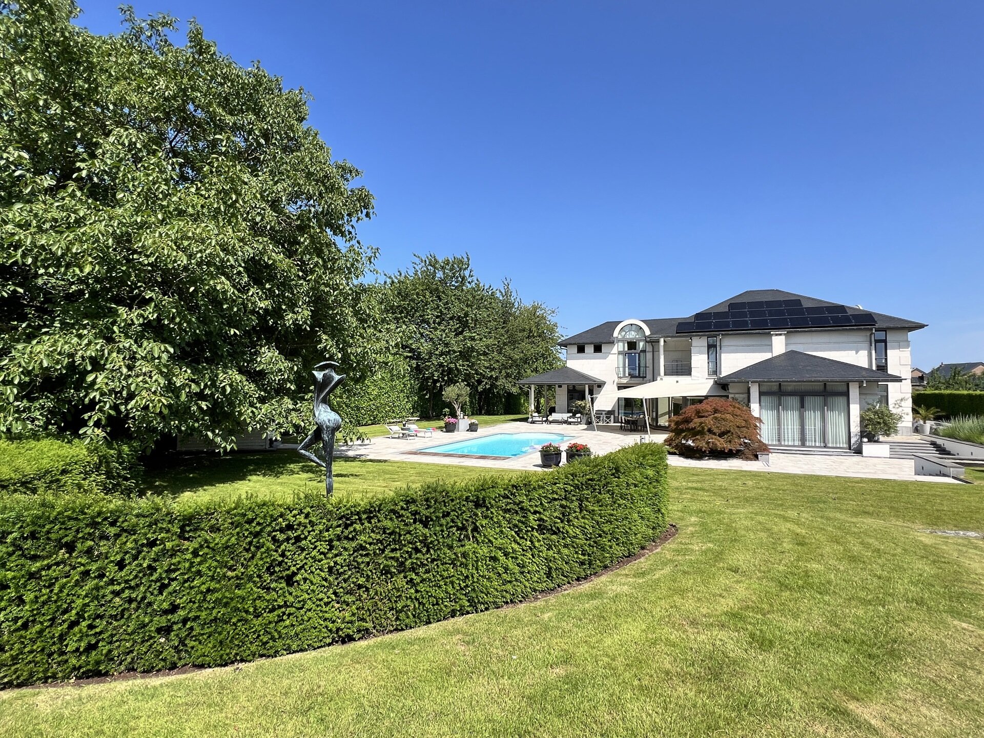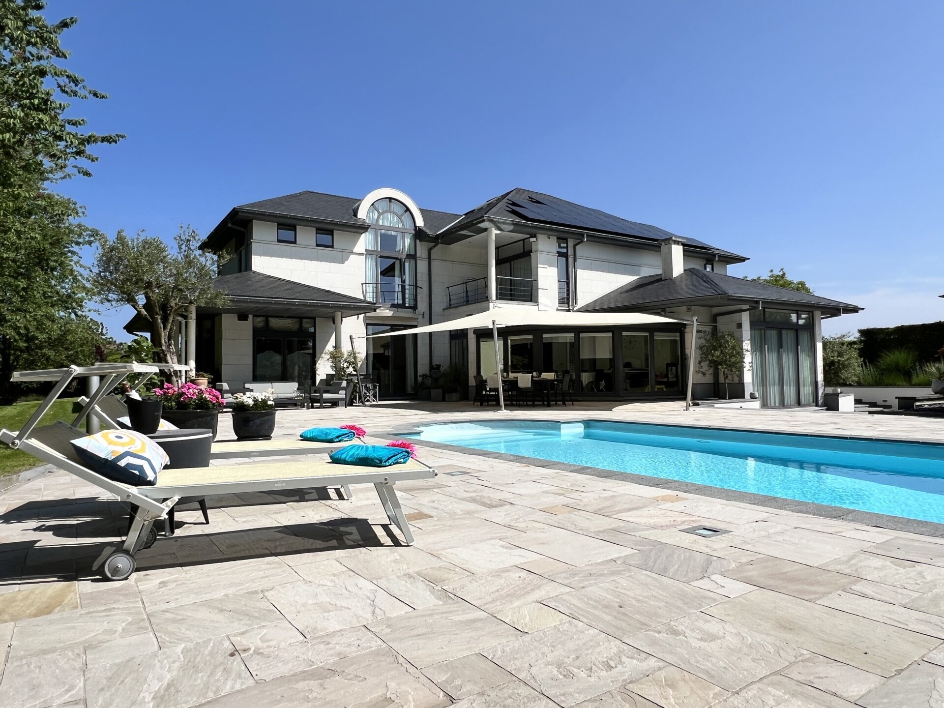 Ideaal gelegen dichtbij Joli-Bois, rust deze elegante en belichte villa uit 2008 met een bewoonbare oppervlakte van ± 443 m² (± 670 m² gebouwd) op een prachtig aangelegd terrein van ± 45 are 20 ca met een verwarmd zwembad en ruime terrassen. De begane grond omvat een inkomhal met vestiaire en gastentoilet, een bureau, een cinemazaal, een receptie eetkamer, een spa, een volledig uitgeruste keuken met eetruimte in de veranda, een salon met gashaard en een fitnessruimte. Een groot terras in Romeinse steen, een dubbele garage en een berging maken dit niveau compleet. Op de eerste verdieping leidt de nachthal naar de master suite, bestaande uit een slaapkamer met balkon, een dressing en een confortabele badkamer. Daarnaast is er een mooie slaapkamer met eigen doucheruimte en twee slaapkamers met mezzanine, elk voorzien van een dressing en een eigen doucheruimte. Een vijfde slaapkamer met balkon doet momenteel dienst als wasruimte, maar kan eenvoudig worden omgevormd tot een aangrenzende extra badkamer. De gedeeltelijke kelder beschikt over een wijnkelder, ruime bergruimtes, een technische ruimte en een gasketelruimte. Deze hoogwaardige woning charmeert door zijn verfijnde afwerking, royale volumes en overvloedige lichtinval. Vloerverwarming, een gevel in Franse steen, fotovoltaïsche panelen, domotica, airconditioning, een B&O-audiosysteem en een elektrische poort verhogen het wooncomfort. Een uitzonderlijk pand dat prestige en discretie combineert.Eigendomsdetails