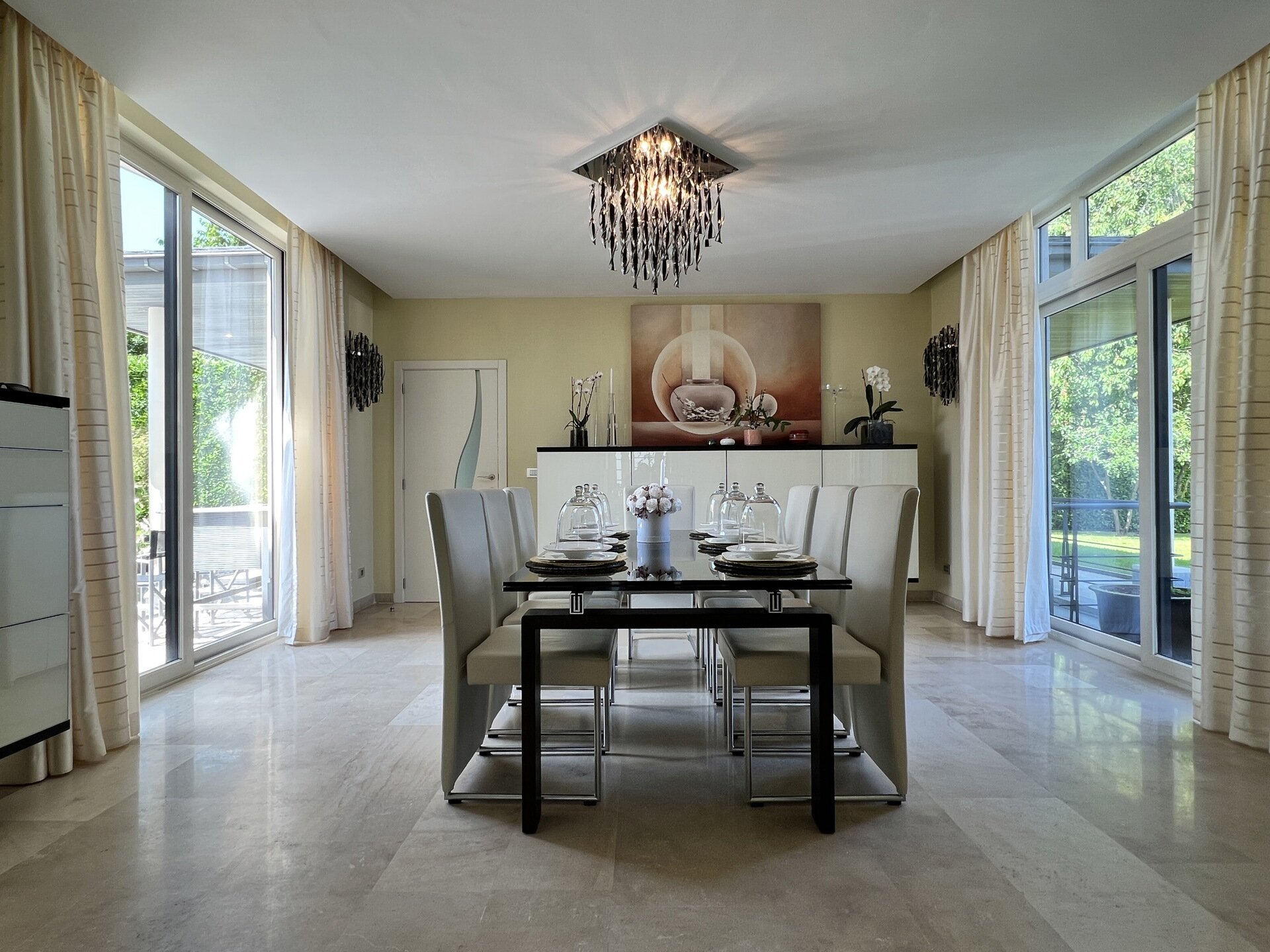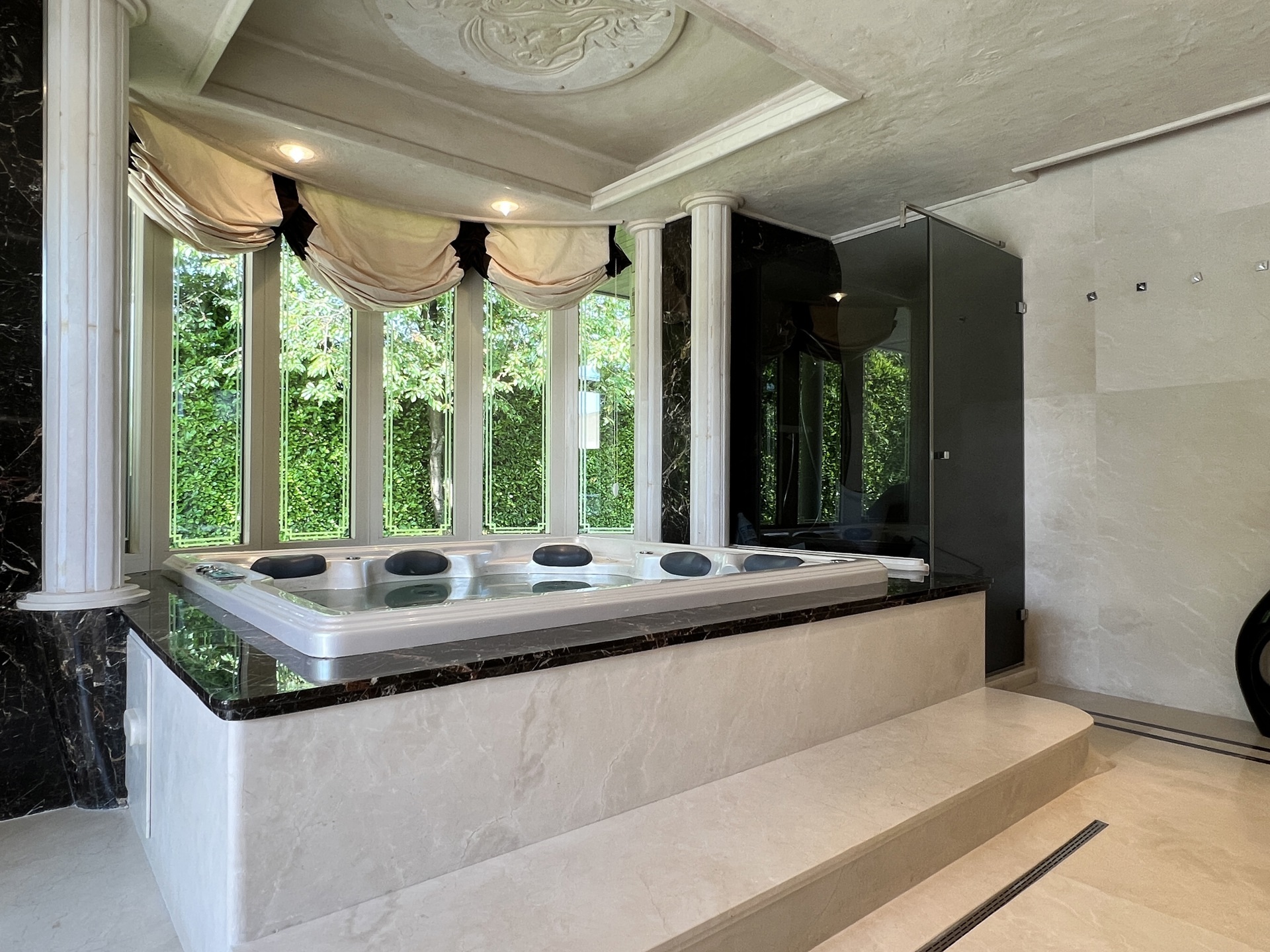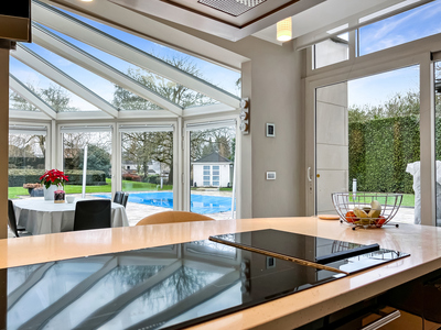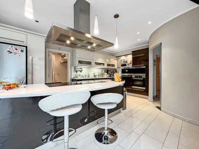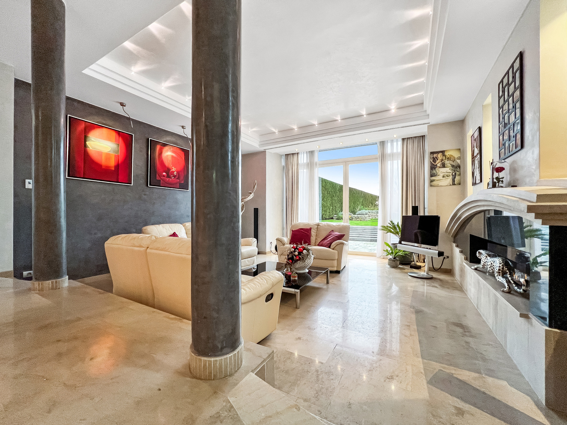 Ideaal gelegen dichtbij Joli-Bois, rust deze elegante en belichte villa uit 2008 met een bewoonbare oppervlakte van ± 443 m² (± 670 m² gebouwd) op een prachtig aangelegd terrein van ± 45 are 20 ca met een verwarmd zwembad en ruime terrassen. De begane grond omvat een inkomhal met vestiaire en gastentoilet, een bureau, een cinemazaal, een receptie eetkamer, een spa, een volledig uitgeruste keuken met eetruimte in de veranda, een salon met gashaard en een fitnessruimte. Een groot terras in Romeinse steen, een dubbele garage en een berging maken dit niveau compleet. Op de eerste verdieping leidt de nachthal naar de master suite, bestaande uit een slaapkamer met balkon, een dressing en een confortabele badkamer. Daarnaast is er een mooie slaapkamer met eigen doucheruimte en twee slaapkamers met mezzanine, elk voorzien van een dressing en een eigen doucheruimte. Een vijfde slaapkamer met balkon doet momenteel dienst als wasruimte, maar kan eenvoudig worden omgevormd tot een aangrenzende extra badkamer. De gedeeltelijke kelder beschikt over een wijnkelder, ruime bergruimtes, een technische ruimte en een gasketelruimte. Deze hoogwaardige woning charmeert door zijn verfijnde afwerking, royale volumes en overvloedige lichtinval. Vloerverwarming, een gevel in Franse steen, fotovoltaïsche panelen, domotica, airconditioning, een B&O-audiosysteem en een elektrische poort verhogen het wooncomfort. Een uitzonderlijk pand dat prestige en discretie combineert.Eigendomsdetails