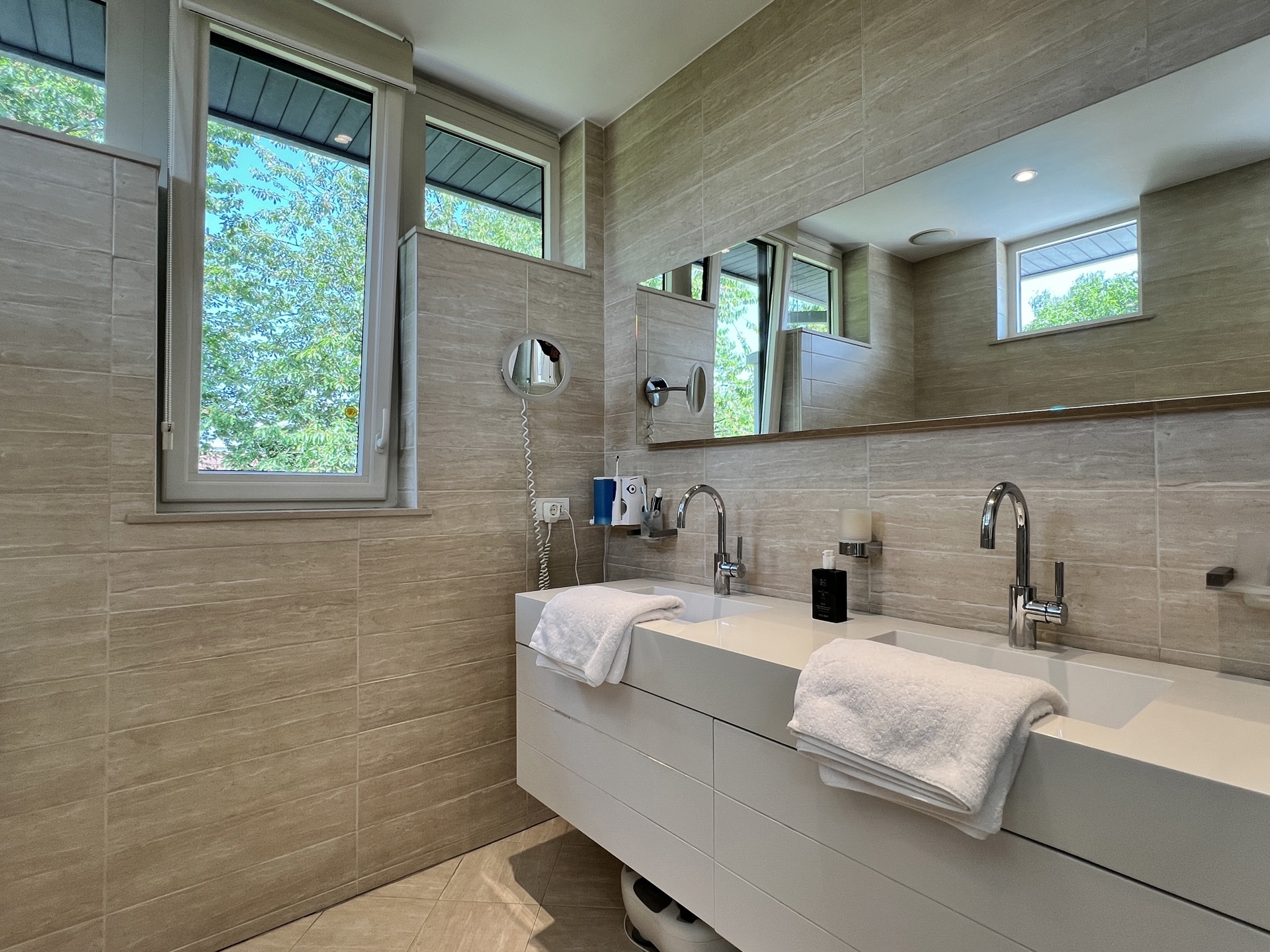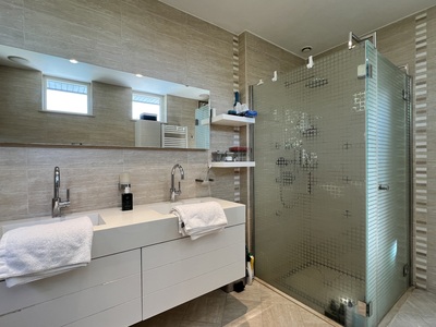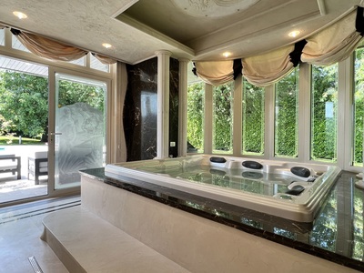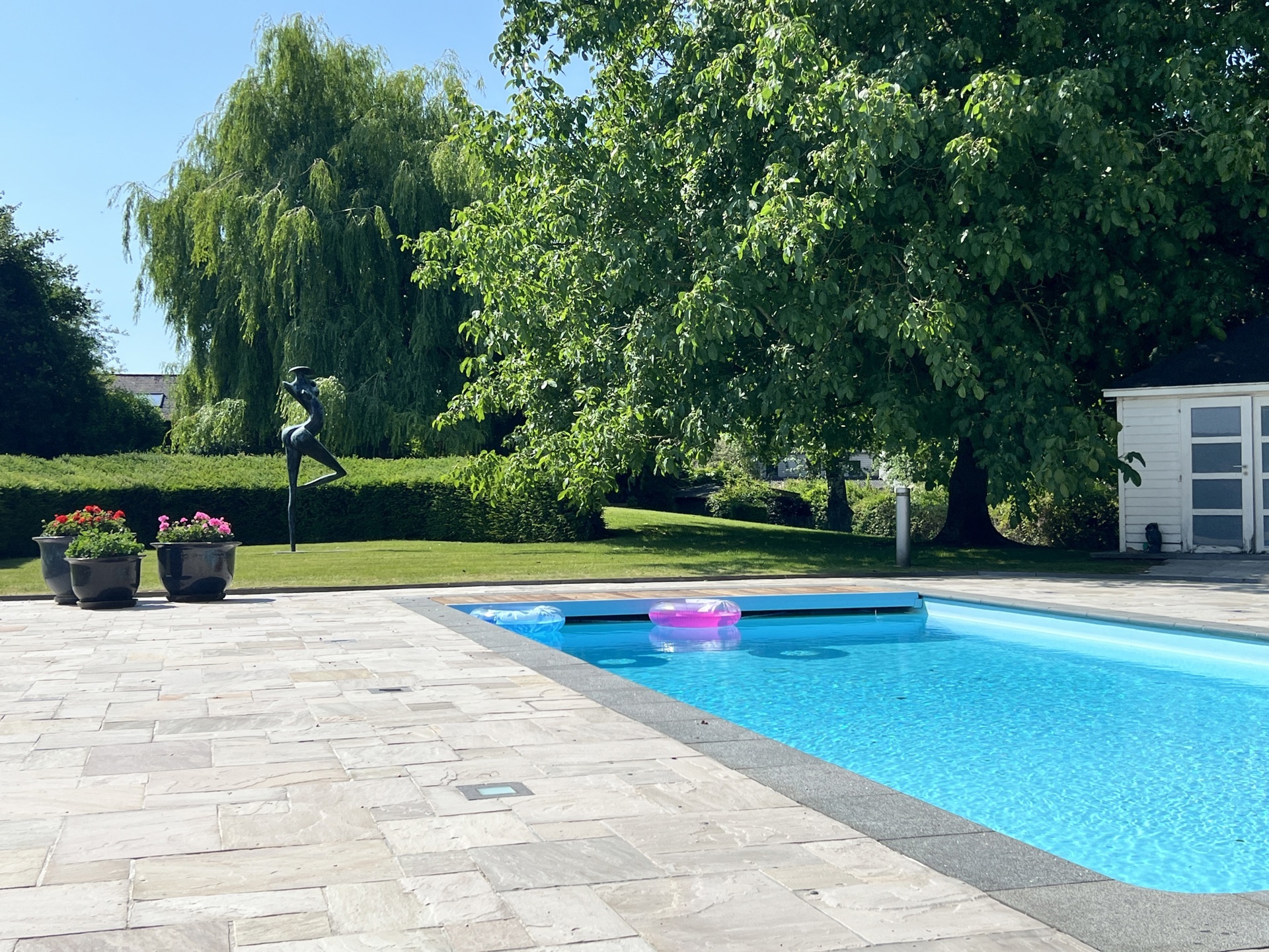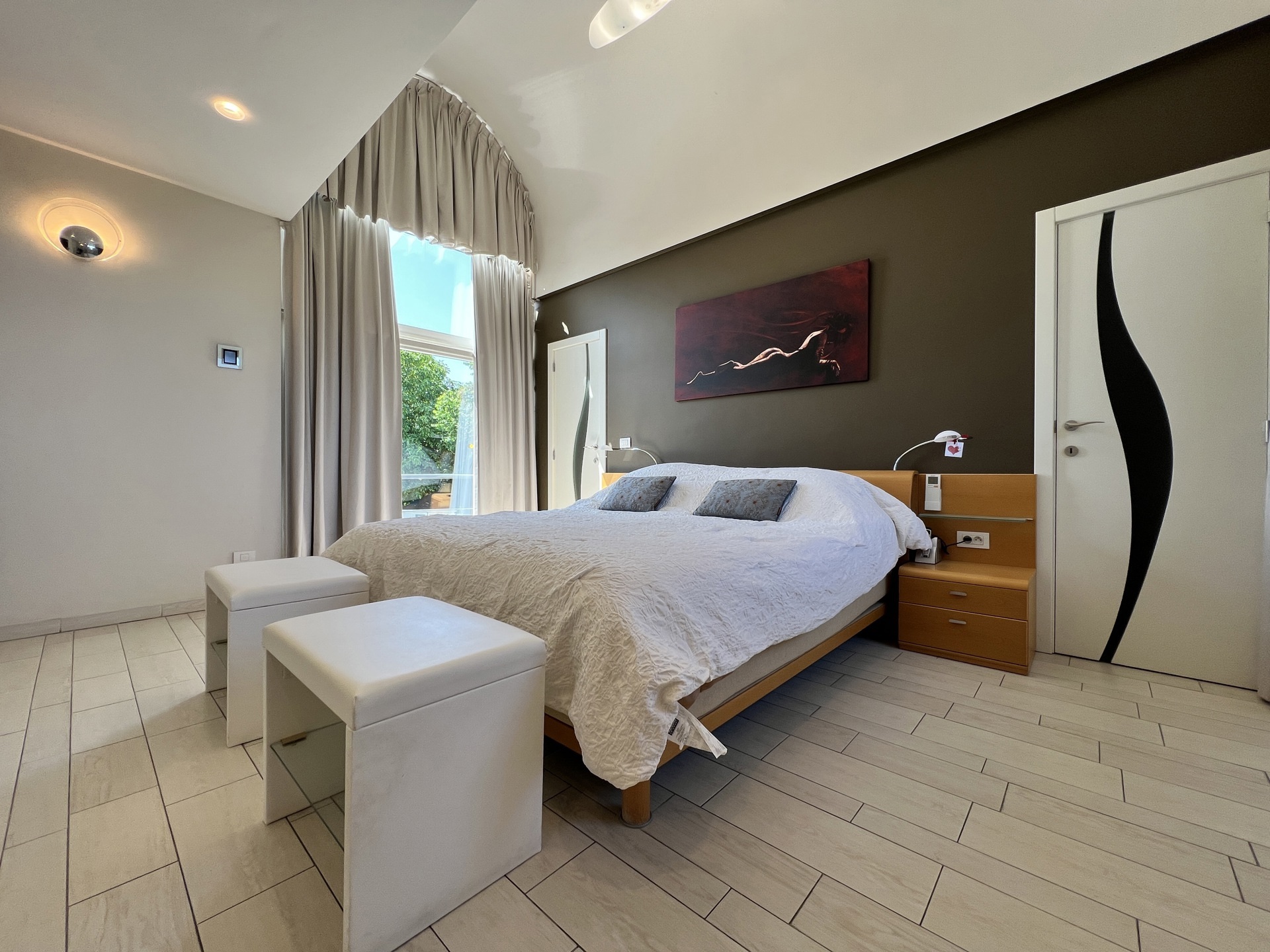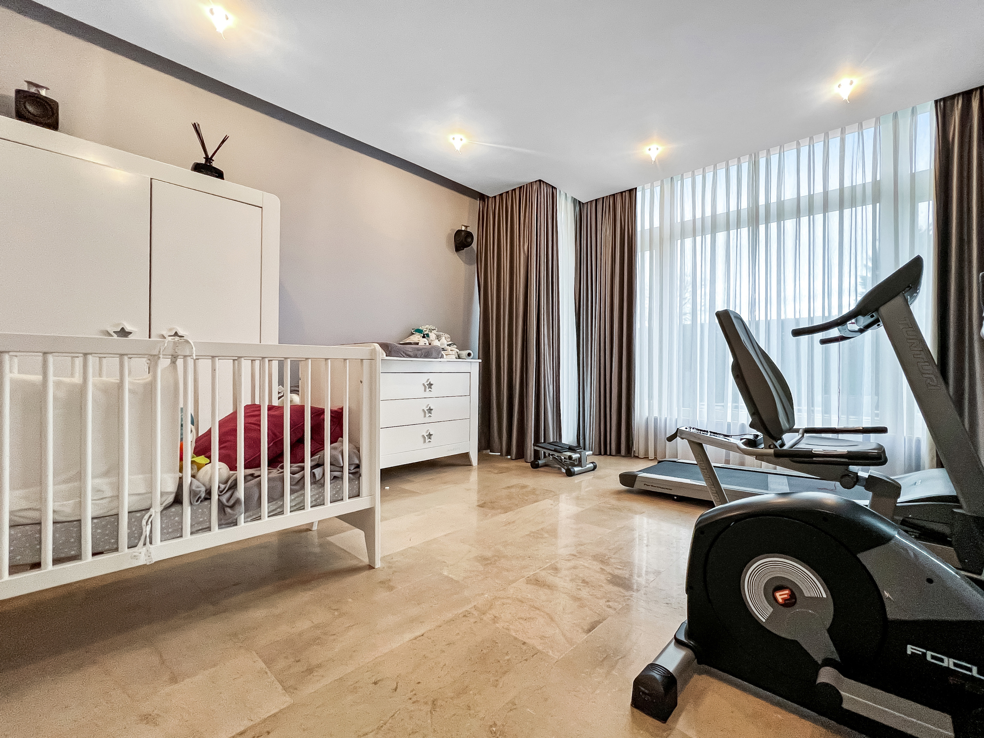 Ideaal gelegen dichtbij Joli-Bois, rust deze elegante en belichte villa uit 2008 met een bewoonbare oppervlakte van ± 443 m² (± 670 m² gebouwd) op een prachtig aangelegd terrein van ± 45 are 20 ca met een verwarmd zwembad en ruime terrassen. De begane grond omvat een inkomhal met vestiaire en gastentoilet, een bureau, een cinemazaal, een receptie eetkamer, een spa, een volledig uitgeruste keuken met eetruimte in de veranda, een salon met gashaard en een fitnessruimte. Een groot terras in Romeinse steen, een dubbele garage en een berging maken dit niveau compleet. Op de eerste verdieping leidt de nachthal naar de master suite, bestaande uit een slaapkamer met balkon, een dressing en een confortabele badkamer. Daarnaast is er een mooie slaapkamer met eigen doucheruimte en twee slaapkamers met mezzanine, elk voorzien van een dressing en een eigen doucheruimte. Een vijfde slaapkamer met balkon doet momenteel dienst als wasruimte, maar kan eenvoudig worden omgevormd tot een aangrenzende extra badkamer. De gedeeltelijke kelder beschikt over een wijnkelder, ruime bergruimtes, een technische ruimte en een gasketelruimte. Deze hoogwaardige woning charmeert door zijn verfijnde afwerking, royale volumes en overvloedige lichtinval. Vloerverwarming, een gevel in Franse steen, fotovoltaïsche panelen, domotica, airconditioning, een B&O-audiosysteem en een elektrische poort verhogen het wooncomfort. Een uitzonderlijk pand dat prestige en discretie combineert.Eigendomsdetails