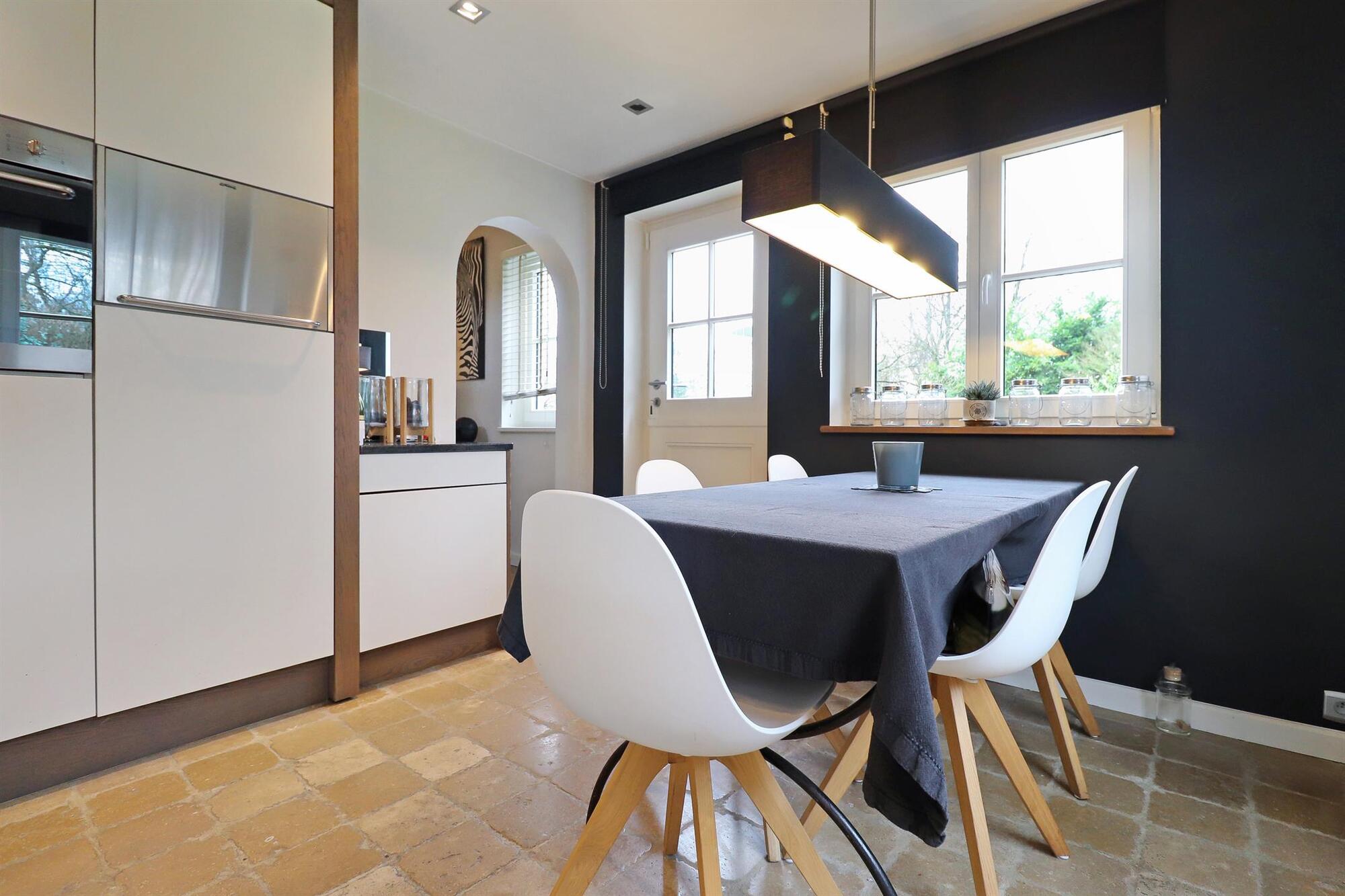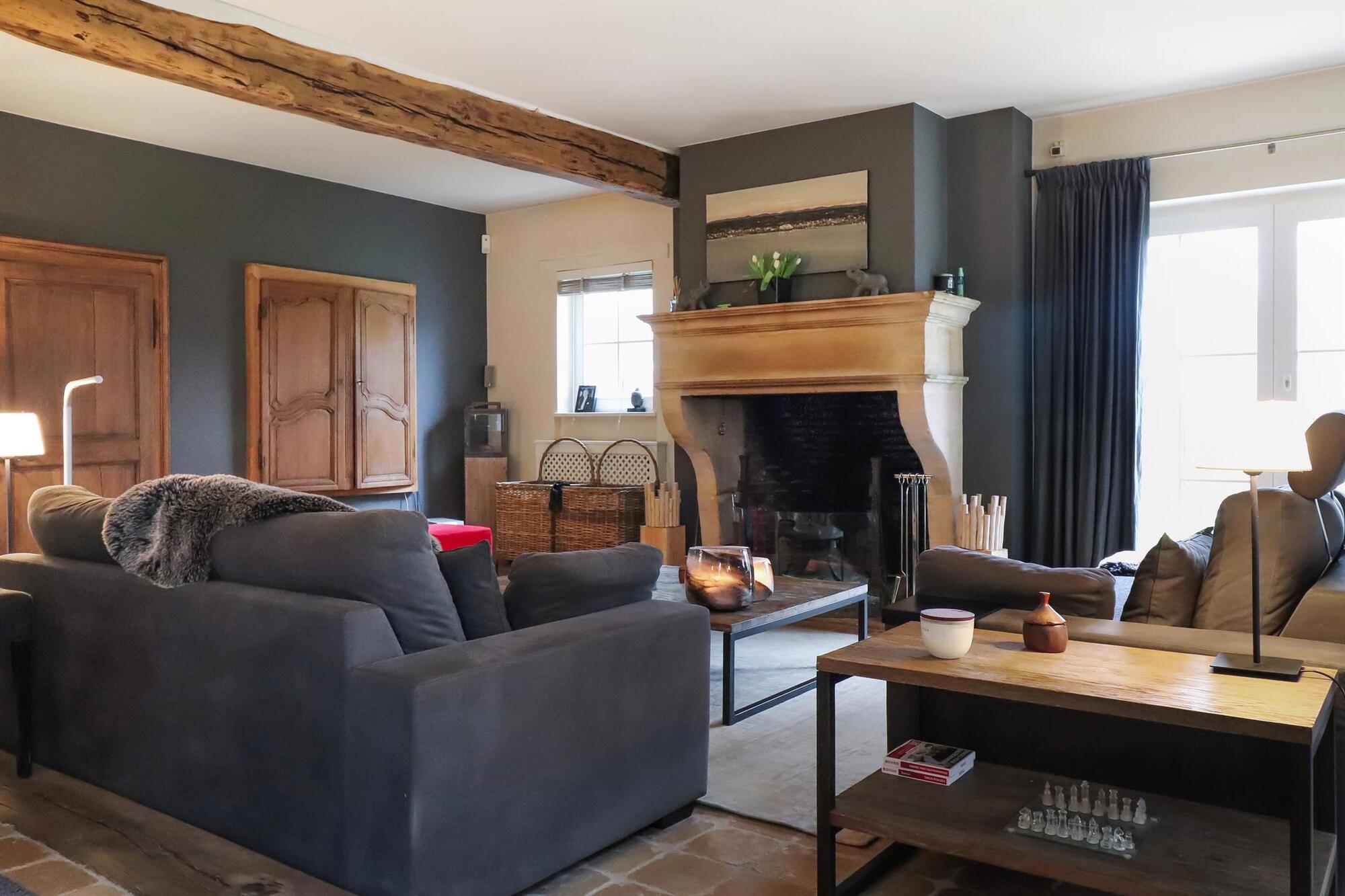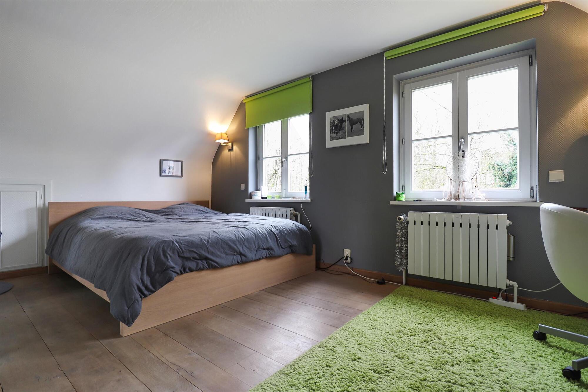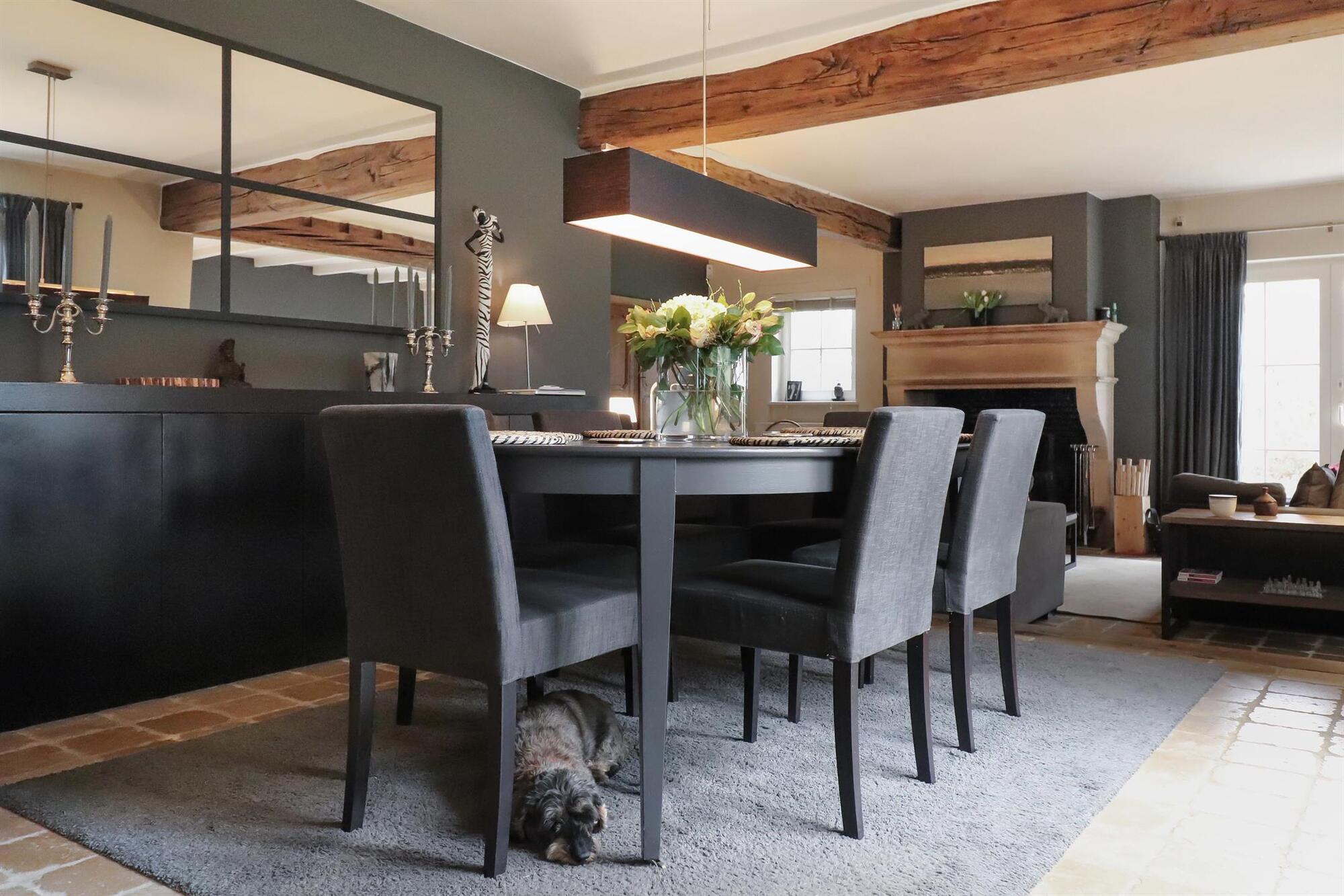Nichée dans une petite rue pittoresque de Lasne, proche de la place de Renival, cette charmante villa fera le bonheur de ceux qui souhaitent vivre au calme et à l'abri des regards. Accompagnée d'un appartement de rez-de-chaussée, elle conviendra parfaitement aux familles hébergeant un proche, aux professions libérales, ou encore à ceux qui souhaitent bénéficier d'un joli revenu locatif. Au rez-de-chaussée, la maison se compose d'un hall d'entrée, d'un vaste et lumineux séjour ouvert sur la terrasse et agrémenté d'un feu ouvert, d'une cuisine équipée avec coin déjeuner bénéficiant elle aussi d'un accès vers l'extérieur, ainsi que d'un garage et d'une buanderie. Un bel escalier constitué d'anciennes ailes de moulin permet d'accéder à l'étage où sont situées trois chambres se partageant une salle de bain et une salle de douche, ainsi qu'une superbe suite parentale comprenant un dressing, une salle de bain et une douche à l'italienne. L'appartement de rez-de-chaussée bénéficie de sa propre terrasse et se compose d'un hall d'entrée, d'un séjour avec insert à bois, d'une cuisine ouverte, d'une chambre et d'une salle de douche. A l'extérieur, le bien est entouré d'un magnifique jardin garni de fleurs, d'arbustes et d'arbres majestueux, tandis qu'une cour pavée offre plusieurs places de parking. Au-delà du jardin, les prairies et les champs s'étendent à perte de vue.Eigendomsdetails