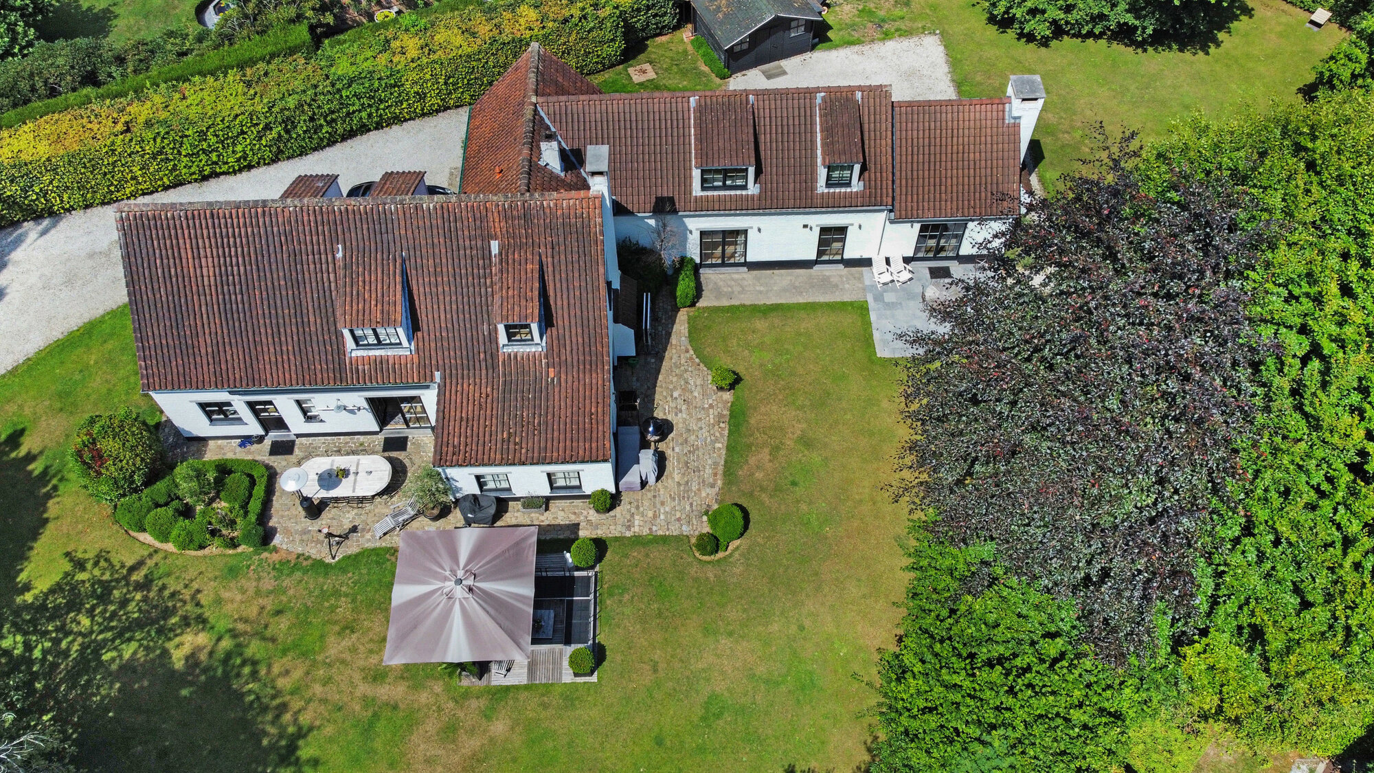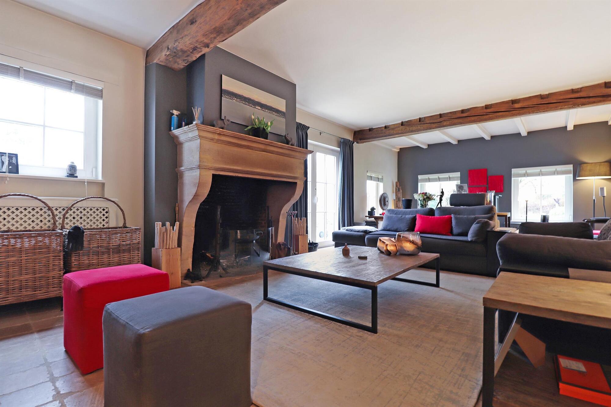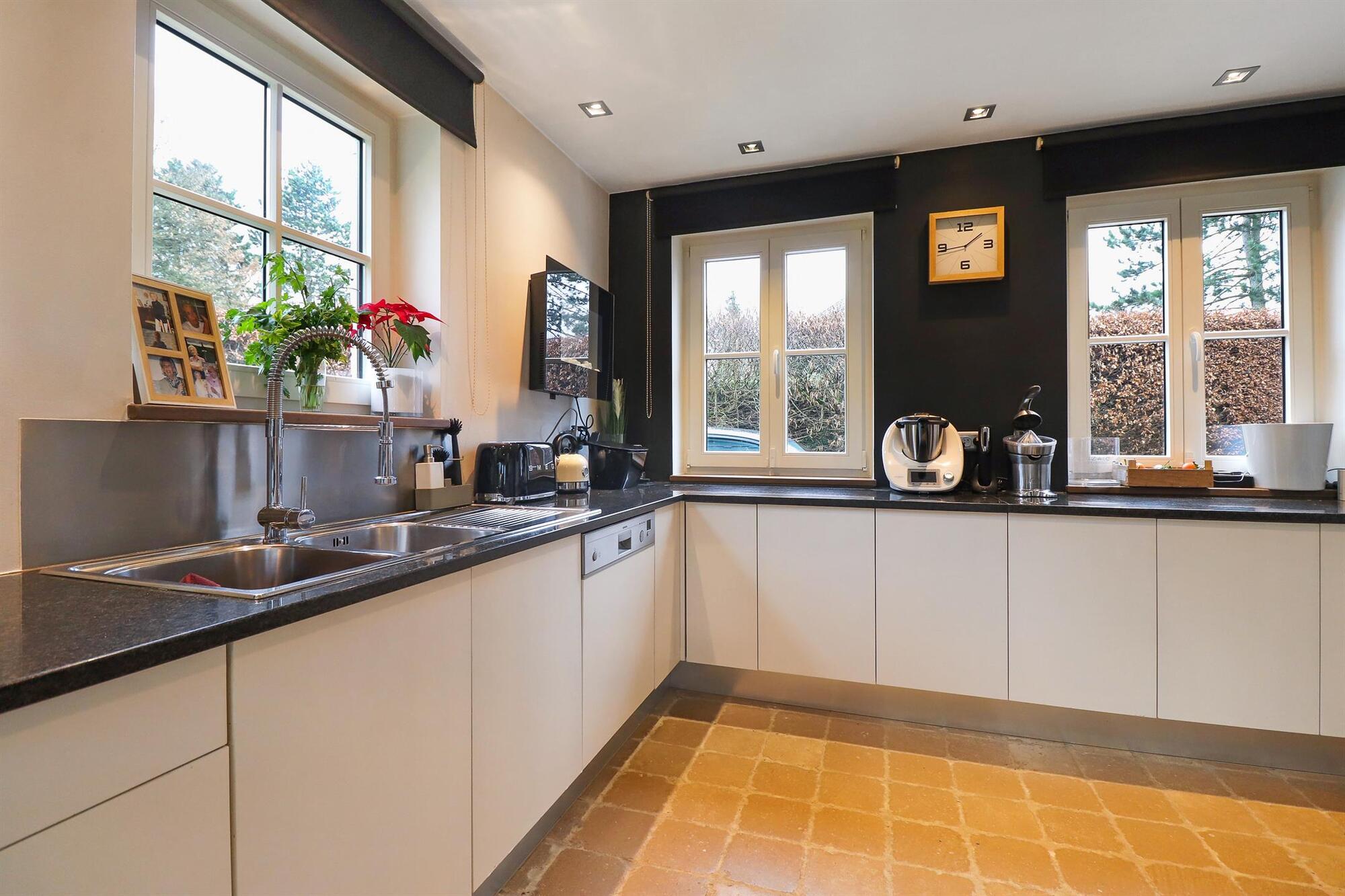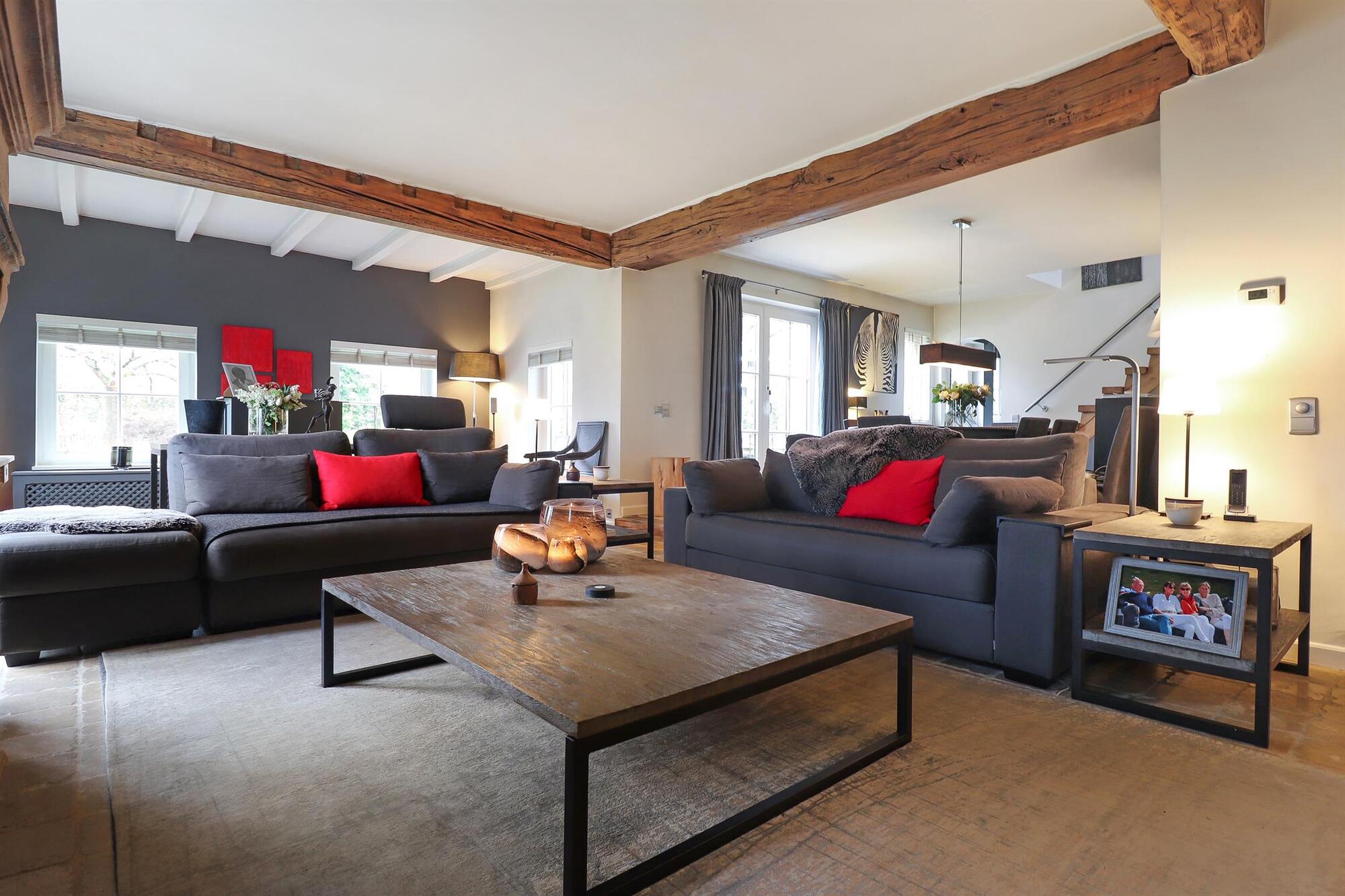 Nichée dans une petite rue pittoresque de Lasne, proche de la place de Renival, cette charmante villa fera le bonheur de ceux qui souhaitent vivre au calme et à l'abri des regards. Accompagnée d'un appartement de rez-de-chaussée, elle conviendra parfaitement aux familles hébergeant un proche, aux professions libérales, ou encore à ceux qui souhaitent bénéficier d'un joli revenu locatif. Au rez-de-chaussée, la maison se compose d'un hall d'entrée, d'un vaste et lumineux séjour ouvert sur la terrasse et agrémenté d'un feu ouvert, d'une cuisine équipée avec coin déjeuner bénéficiant elle aussi d'un accès vers l'extérieur, ainsi que d'un garage et d'une buanderie. Un bel escalier constitué d'anciennes ailes de moulin permet d'accéder à l'étage où sont situées trois chambres se partageant une salle de bain et une salle de douche, ainsi qu'une superbe suite parentale comprenant un dressing, une salle de bain et une douche à l'italienne. L'appartement de rez-de-chaussée bénéficie de sa propre terrasse et se compose d'un hall d'entrée, d'un séjour avec insert à bois, d'une cuisine ouverte, d'une chambre et d'une salle de douche. A l'extérieur, le bien est entouré d'un magnifique jardin garni de fleurs, d'arbustes et d'arbres majestueux, tandis qu'une cour pavée offre plusieurs places de parking. Au-delà du jardin, les prairies et les champs s'étendent à perte de vue.Eigendomsdetails