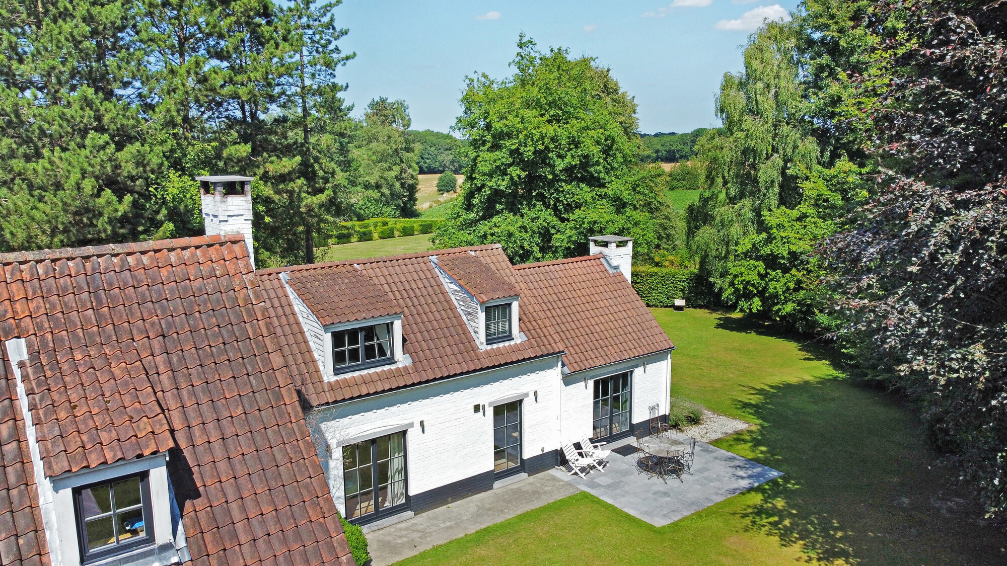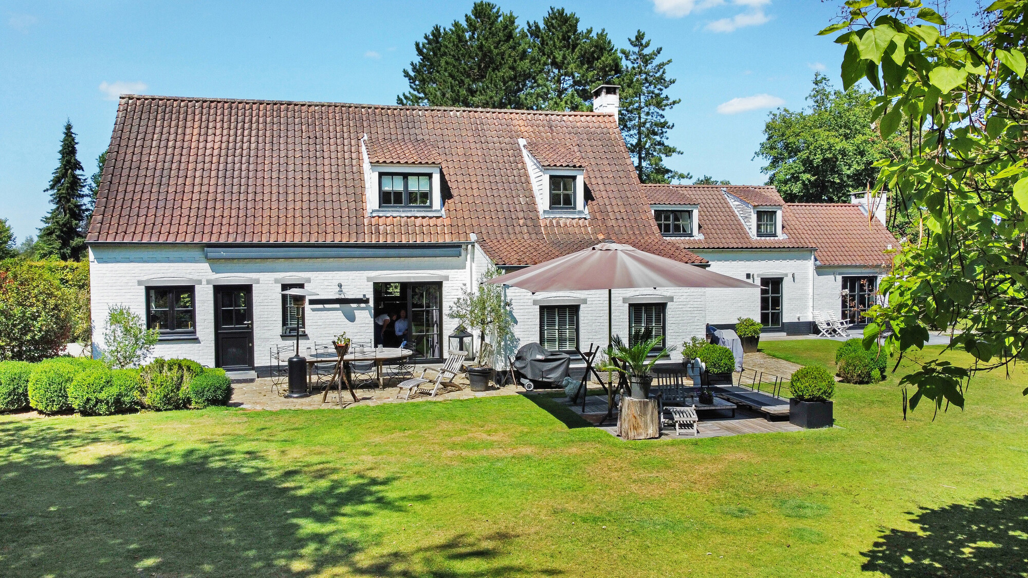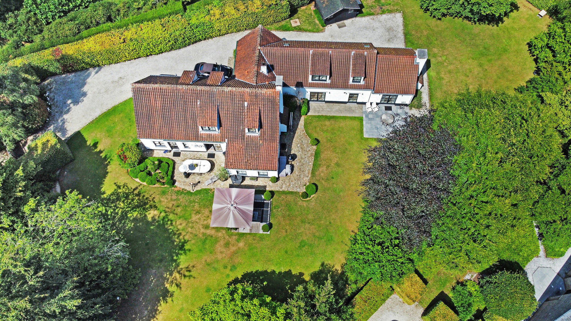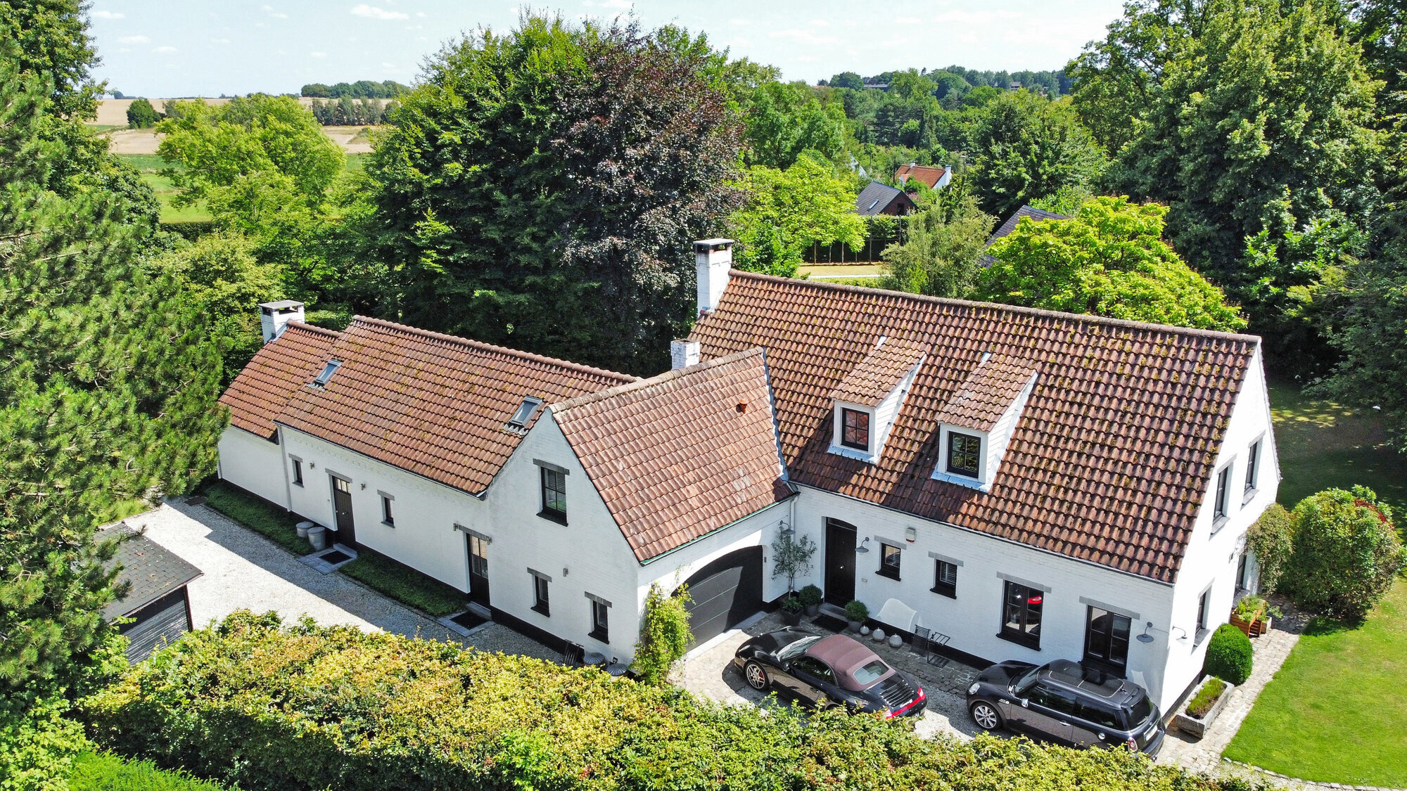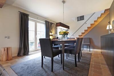 Nichée dans une petite rue pittoresque de Lasne, proche de la place de Renival, cette charmante villa fera le bonheur de ceux qui souhaitent vivre au calme et à l'abri des regards. Accompagnée d'un appartement de rez-de-chaussée, elle conviendra parfaitement aux familles hébergeant un proche, aux professions libérales, ou encore à ceux qui souhaitent bénéficier d'un joli revenu locatif. Au rez-de-chaussée, la maison se compose d'un hall d'entrée, d'un vaste et lumineux séjour ouvert sur la terrasse et agrémenté d'un feu ouvert, d'une cuisine équipée avec coin déjeuner bénéficiant elle aussi d'un accès vers l'extérieur, ainsi que d'un garage et d'une buanderie. Un bel escalier constitué d'anciennes ailes de moulin permet d'accéder à l'étage où sont situées trois chambres se partageant une salle de bain et une salle de douche, ainsi qu'une superbe suite parentale comprenant un dressing, une salle de bain et une douche à l'italienne. L'appartement de rez-de-chaussée bénéficie de sa propre terrasse et se compose d'un hall d'entrée, d'un séjour avec insert à bois, d'une cuisine ouverte, d'une chambre et d'une salle de douche. A l'extérieur, le bien est entouré d'un magnifique jardin garni de fleurs, d'arbustes et d'arbres majestueux, tandis qu'une cour pavée offre plusieurs places de parking. Au-delà du jardin, les prairies et les champs s'étendent à perte de vue.Eigendomsdetails