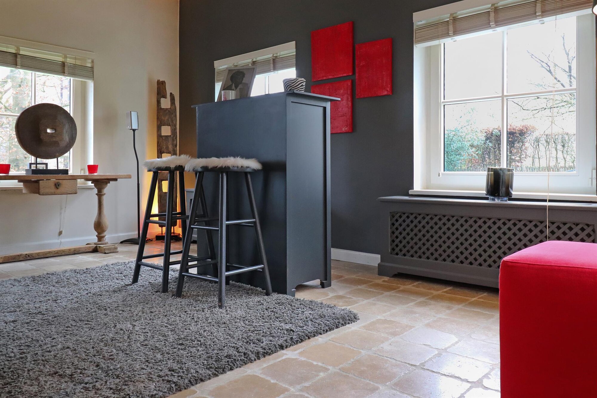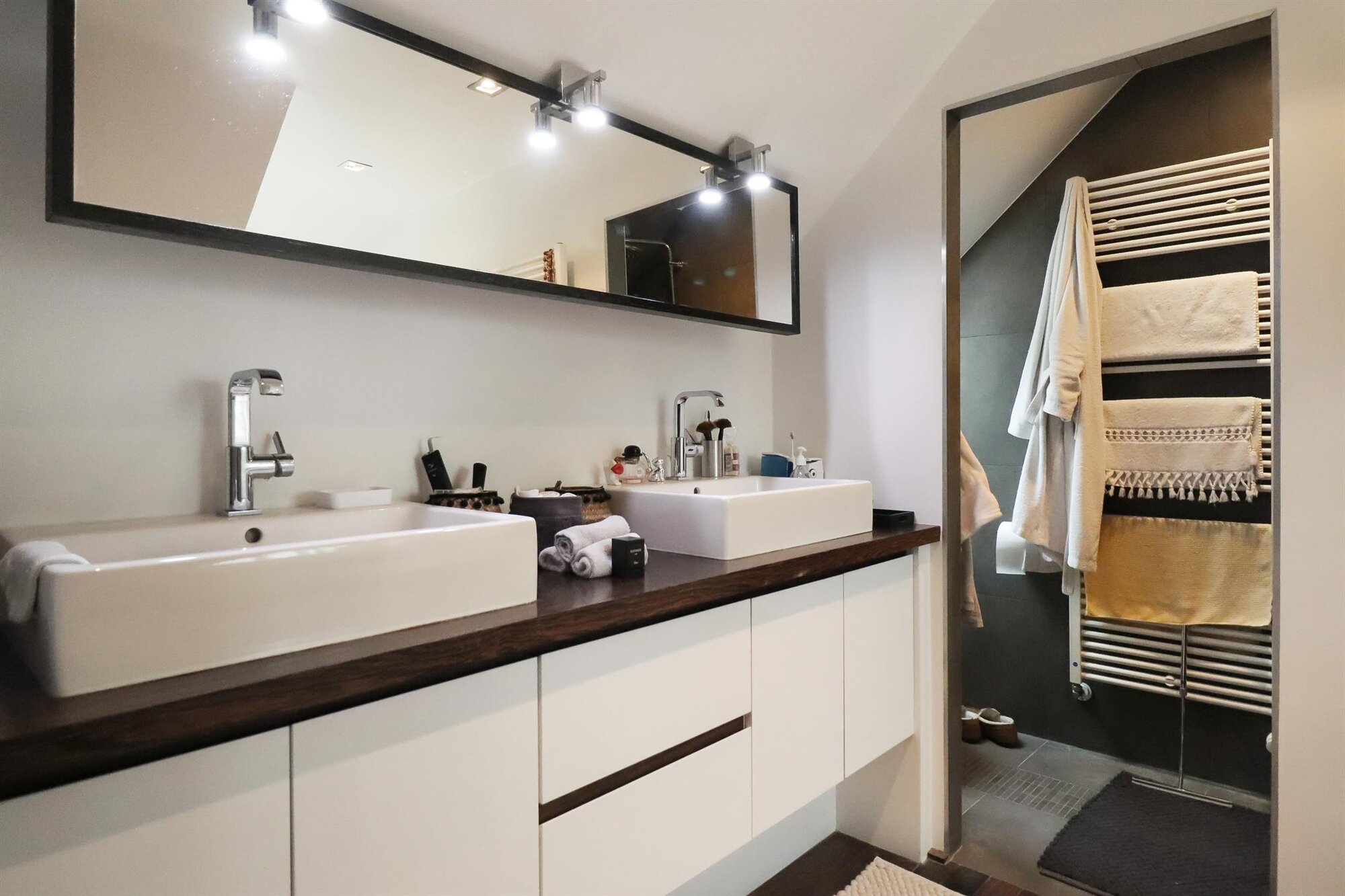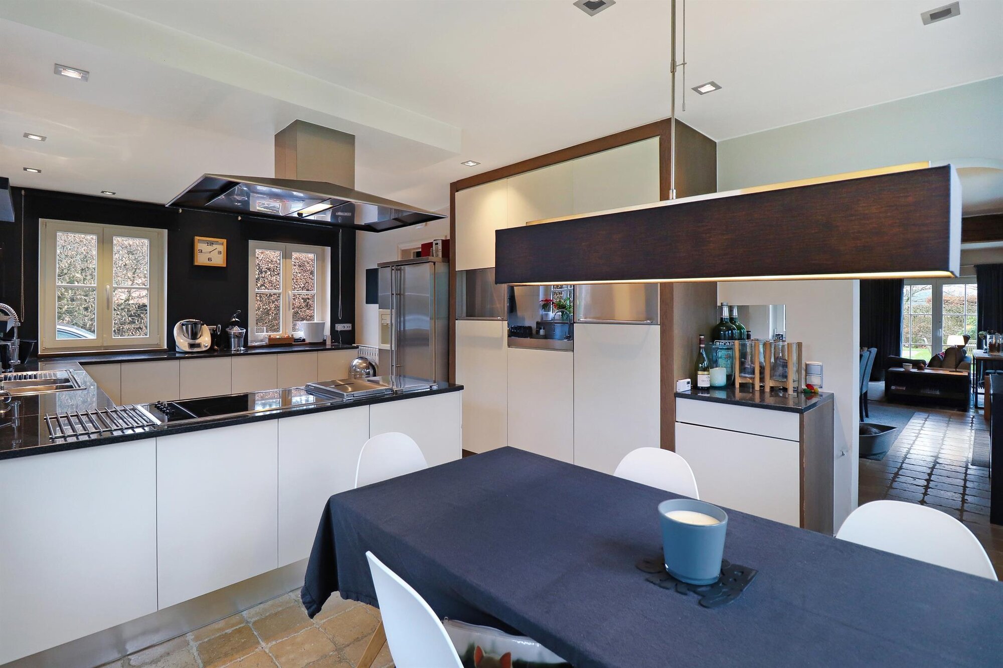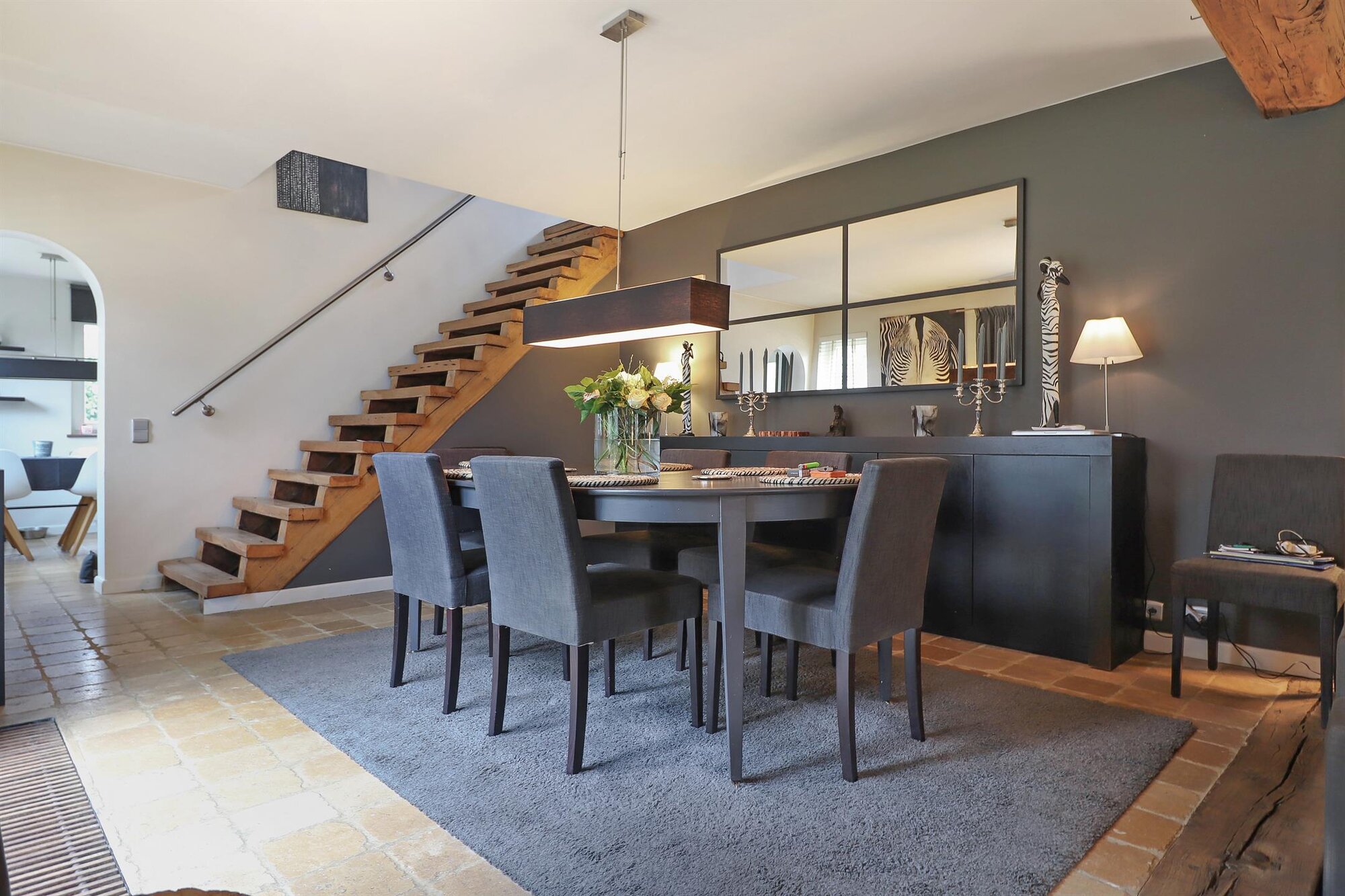 Nichée dans une petite rue pittoresque de Lasne, proche de la place de Renival, cette charmante villa fera le bonheur de ceux qui souhaitent vivre au calme et à l'abri des regards. Accompagnée d'un appartement de rez-de-chaussée, elle conviendra parfaitement aux familles hébergeant un proche, aux professions libérales, ou encore à ceux qui souhaitent bénéficier d'un joli revenu locatif. Au rez-de-chaussée, la maison se compose d'un hall d'entrée, d'un vaste et lumineux séjour ouvert sur la terrasse et agrémenté d'un feu ouvert, d'une cuisine équipée avec coin déjeuner bénéficiant elle aussi d'un accès vers l'extérieur, ainsi que d'un garage et d'une buanderie. Un bel escalier constitué d'anciennes ailes de moulin permet d'accéder à l'étage où sont situées trois chambres se partageant une salle de bain et une salle de douche, ainsi qu'une superbe suite parentale comprenant un dressing, une salle de bain et une douche à l'italienne. L'appartement de rez-de-chaussée bénéficie de sa propre terrasse et se compose d'un hall d'entrée, d'un séjour avec insert à bois, d'une cuisine ouverte, d'une chambre et d'une salle de douche. A l'extérieur, le bien est entouré d'un magnifique jardin garni de fleurs, d'arbustes et d'arbres majestueux, tandis qu'une cour pavée offre plusieurs places de parking. Au-delà du jardin, les prairies et les champs s'étendent à perte de vue.Eigendomsdetails