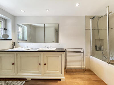 Verborgen in een hoekje paradijs aan het einde van zijn eigen oprit, deze charmante pand is de droomplek voor natuurliefhebbers. Gelegen in een rustige omgeving zonder inkijk, deze villa biedt privacy en rust dichtbij de belangrijke communicatieroutes. In het huis zorgen de mooie materialen en prachtige schrijnwerken op maat voor een authentieke en warme sfeer. Op de gelijkvloers zijn alle leefruimtes open op de tuin. Aan beide kanten van de enorme hal bevinden zich de woonkamer, versierd met een open haard, en eetkamer die veel gasten kan opvangen. De eerste verdieping heeft een prachtige suite bestaande uit een doucheruimte, een dressing en een bureau. Drie andere mooie slaapkamers delen twee badkamers. De prachtige tuin is versierd met majestueuze bomen en ongewone bloemen die vogels en vlinders aantrekken. Een smeedijzeren kas en een vijver maken dit prachtige plaatje compleet. Creatievelingen kunnen inspiratie zoeken en hun passie uitoefenen in een verborgen buitenatelier.Eigendomsdetails